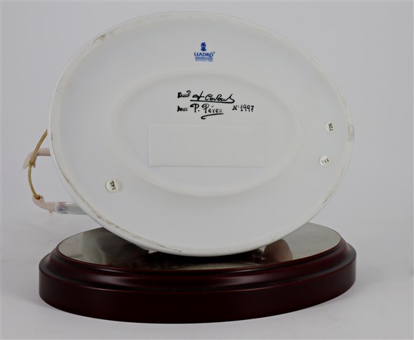 Manifattura Lladrò. Lotto composto da due gruppi in porcellana policroma. Marcati e firme sotto la base (h. max cm 30) basi in legno (difetti)