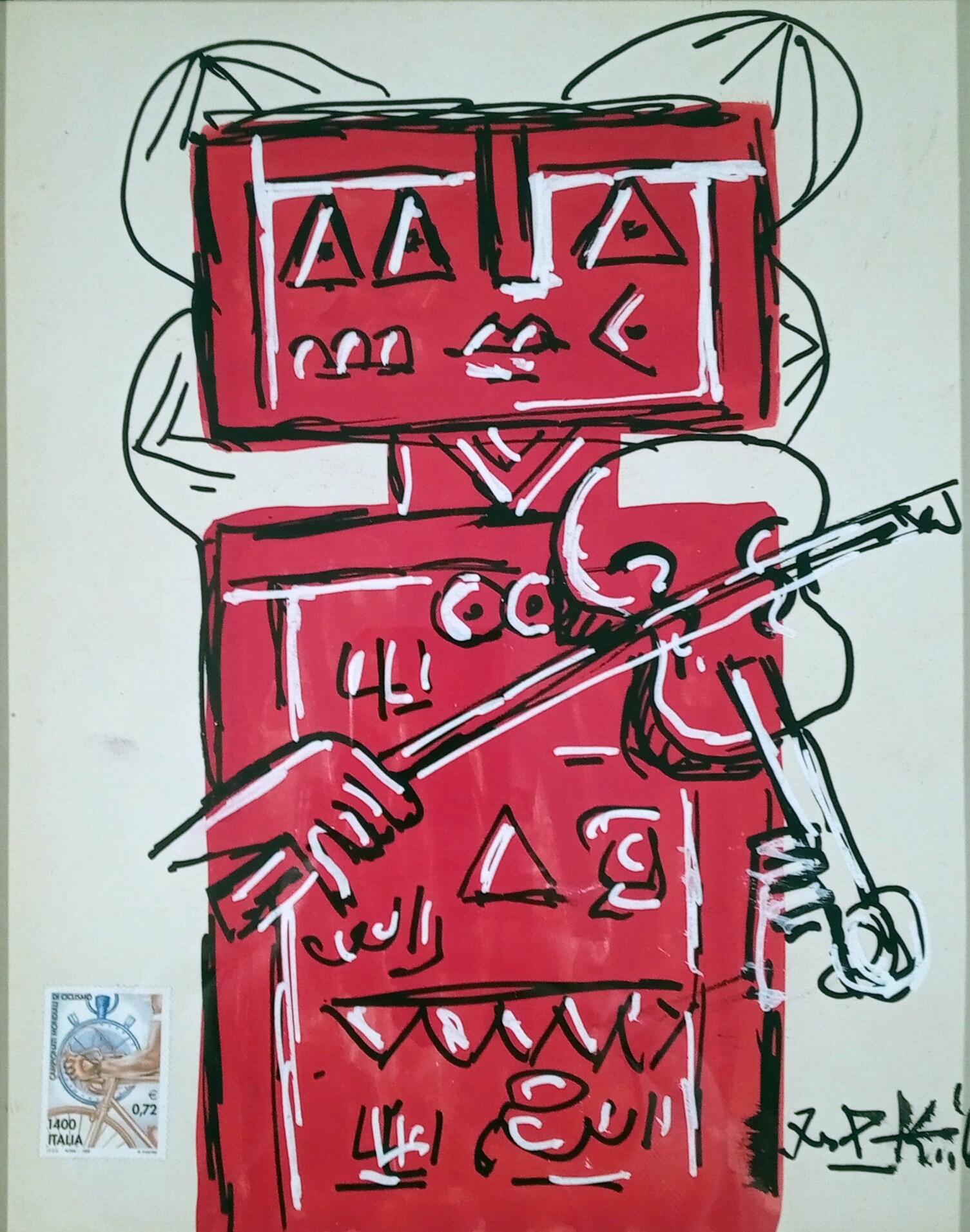 KODRA IBRAHIM Ishëm (Albania) 1918 Musicista Guache su cartoncino 30,00x24,00...