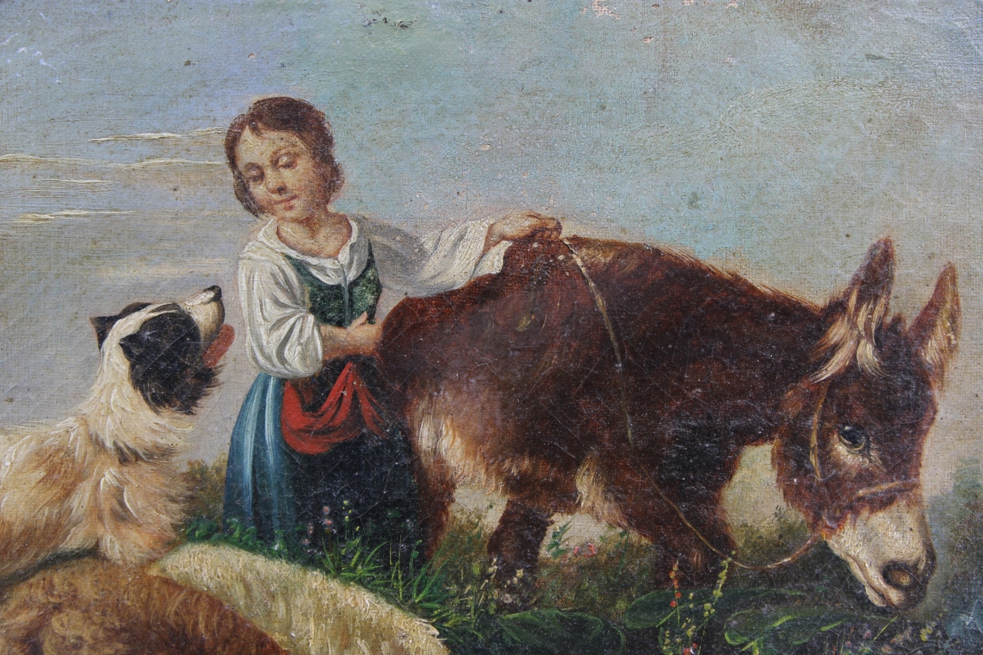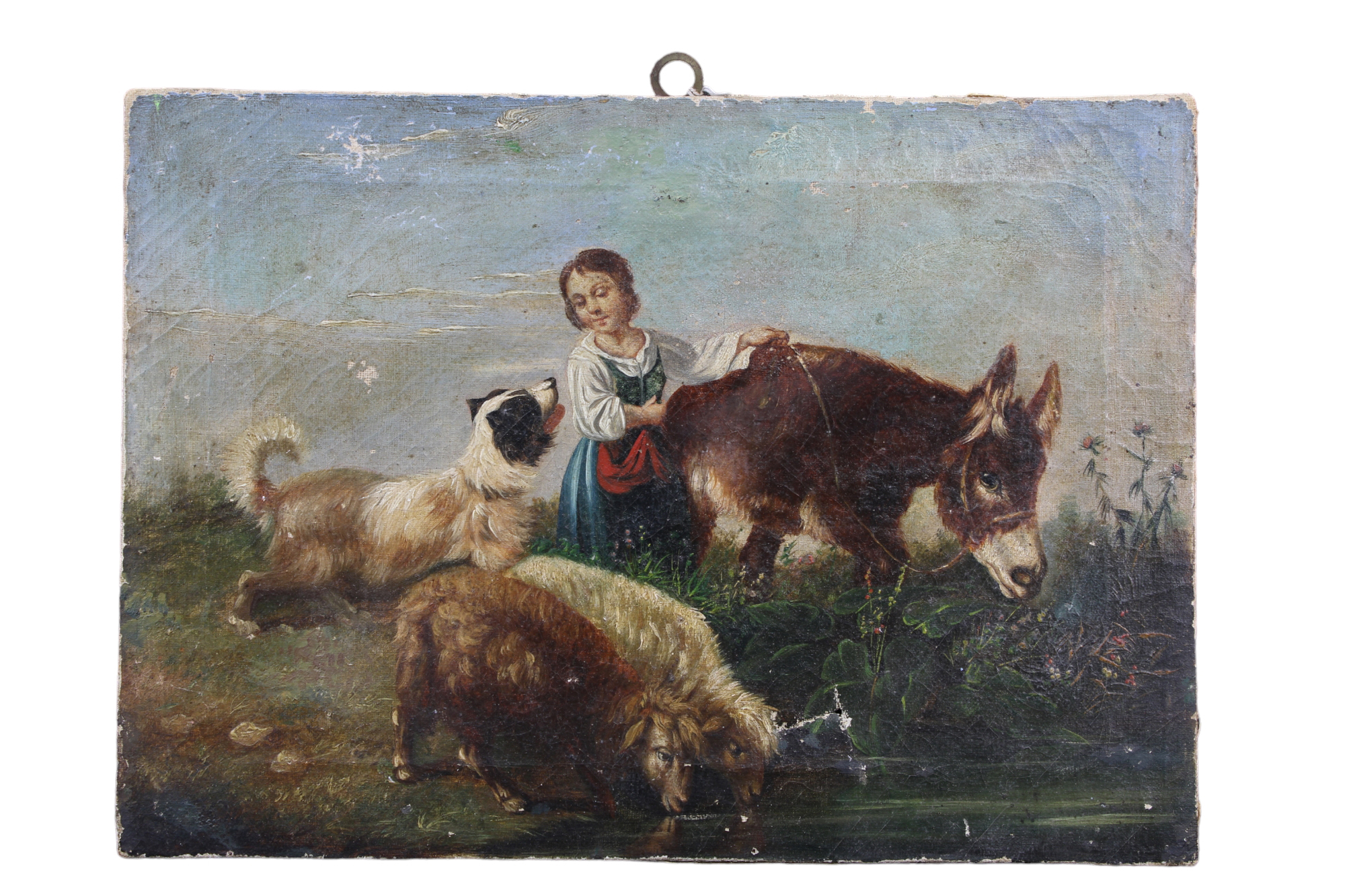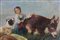 OLIO SU TELA raffigurante pastorella con armenti e cane attribuibile ad Antonio Milone Napoli 1834-1919 h cm 22,5 x 31
