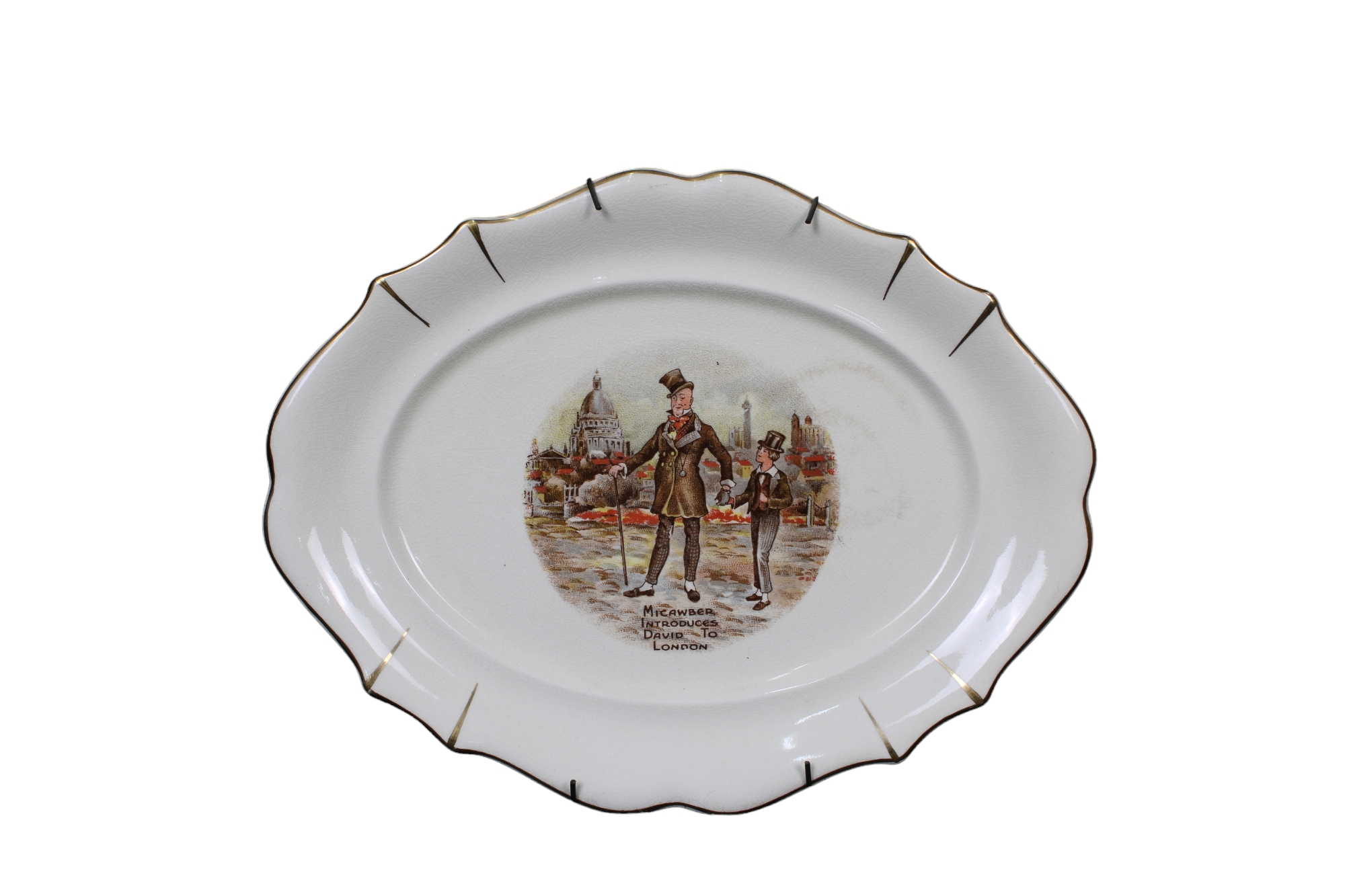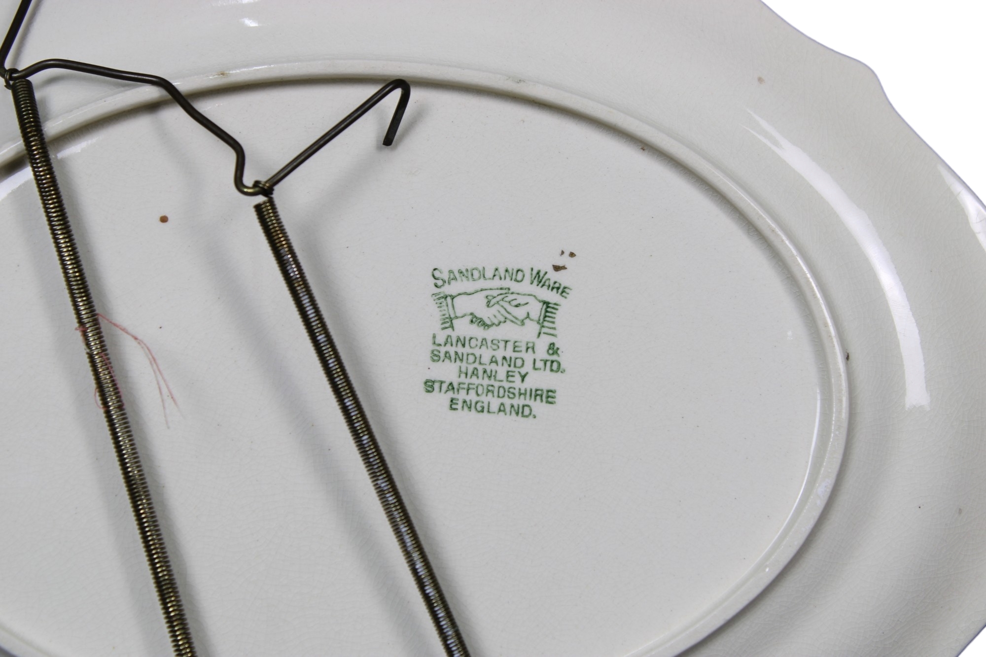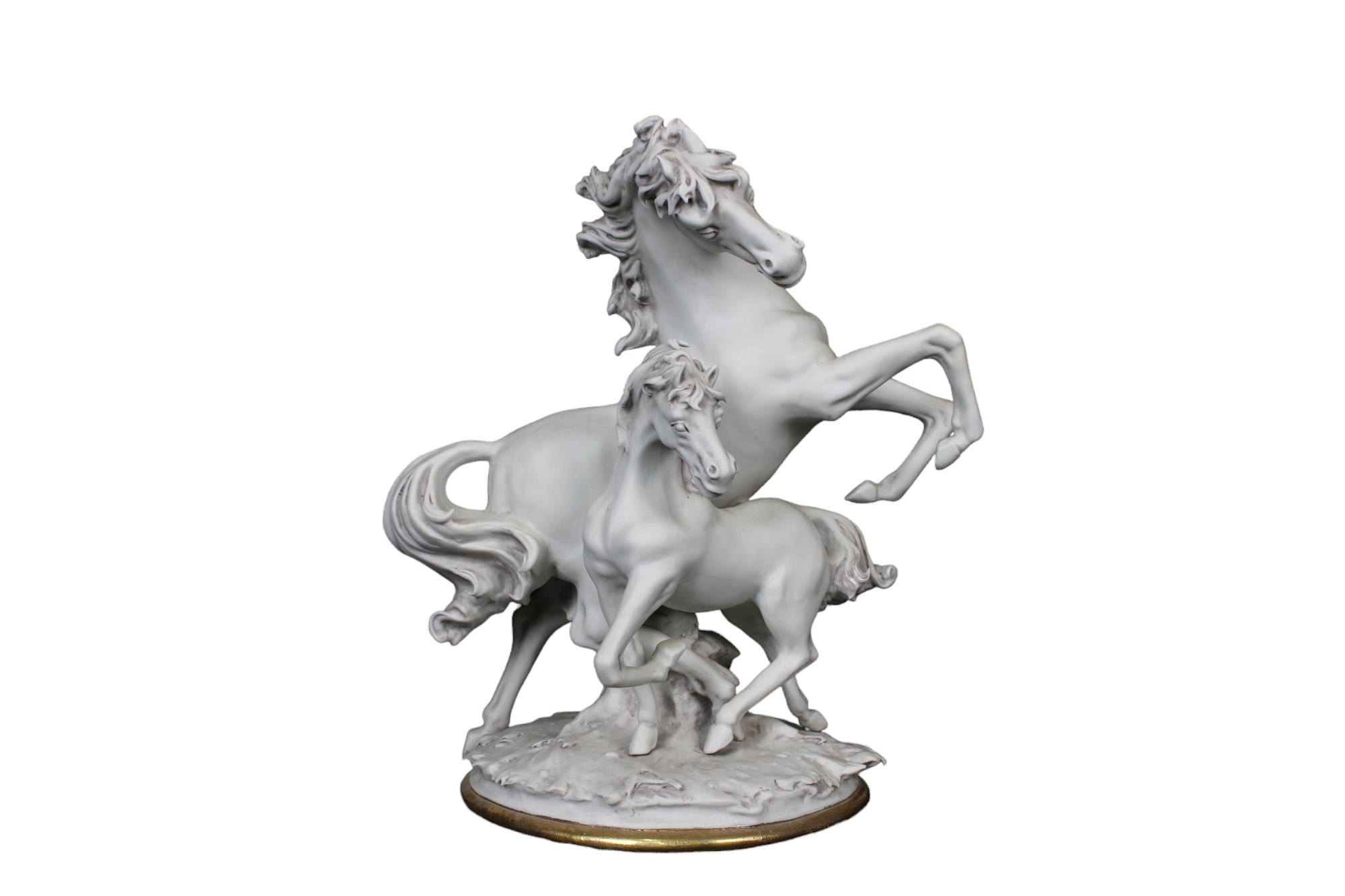 LOTTO COMPOSTO DA un gruppo scultoreo raffigurante cavalli manifattura Triade e un vassoio dipinto scena di vita inglese manifattura Sandland Ware misure varie