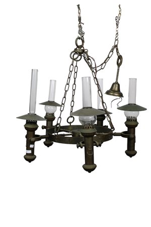 LAMPADARIO DI GUSTO NAVALE in ottone a 6 luci Sicilia primi 900 h cm 70 x 60