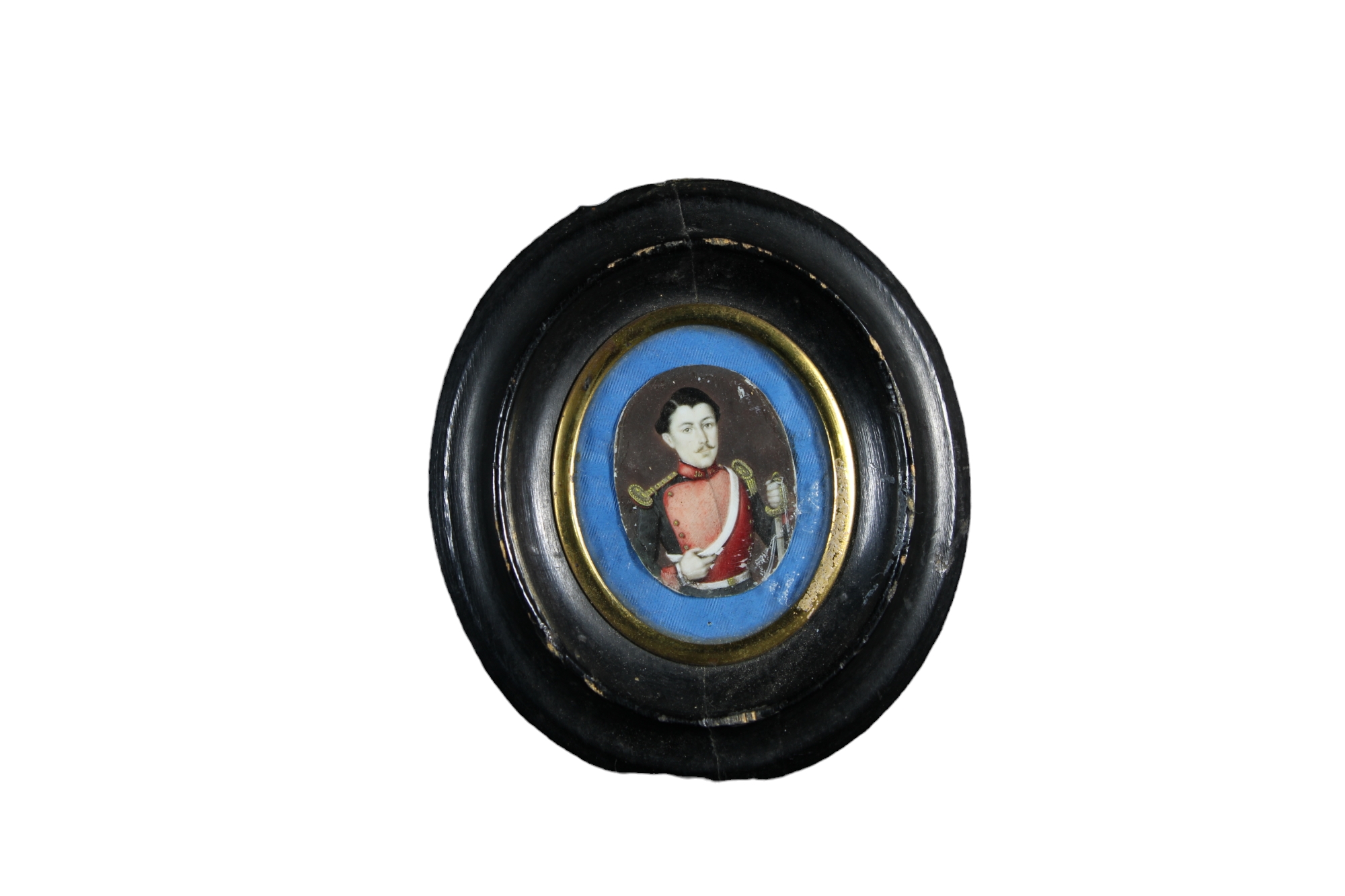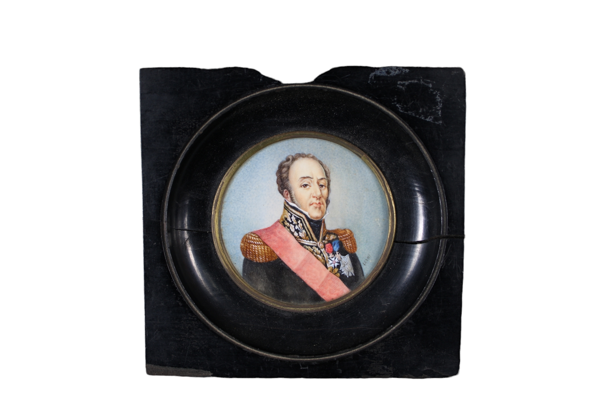 DUE MINIATURE DIPINTE raffiguranti soldati in alta uniforme dentro cornice in legno ebanizzato Francia XIX Secolo h cm 12,5 x 12,5 / h cm 10 x 9