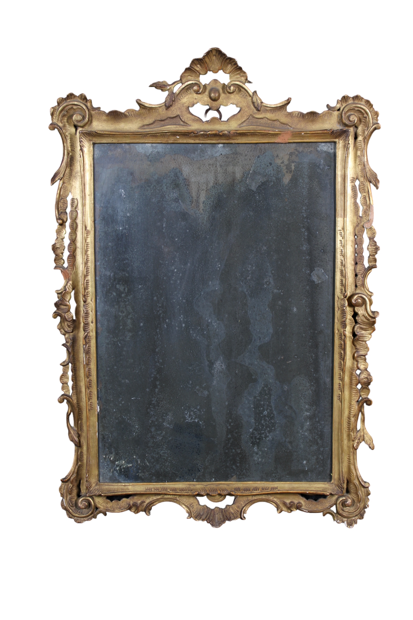 ELEGANTE SPECCHIERA in legno finemente scolpita e dorata a oro zecchino Venezia XVIII Secolo h cm 88 x 59