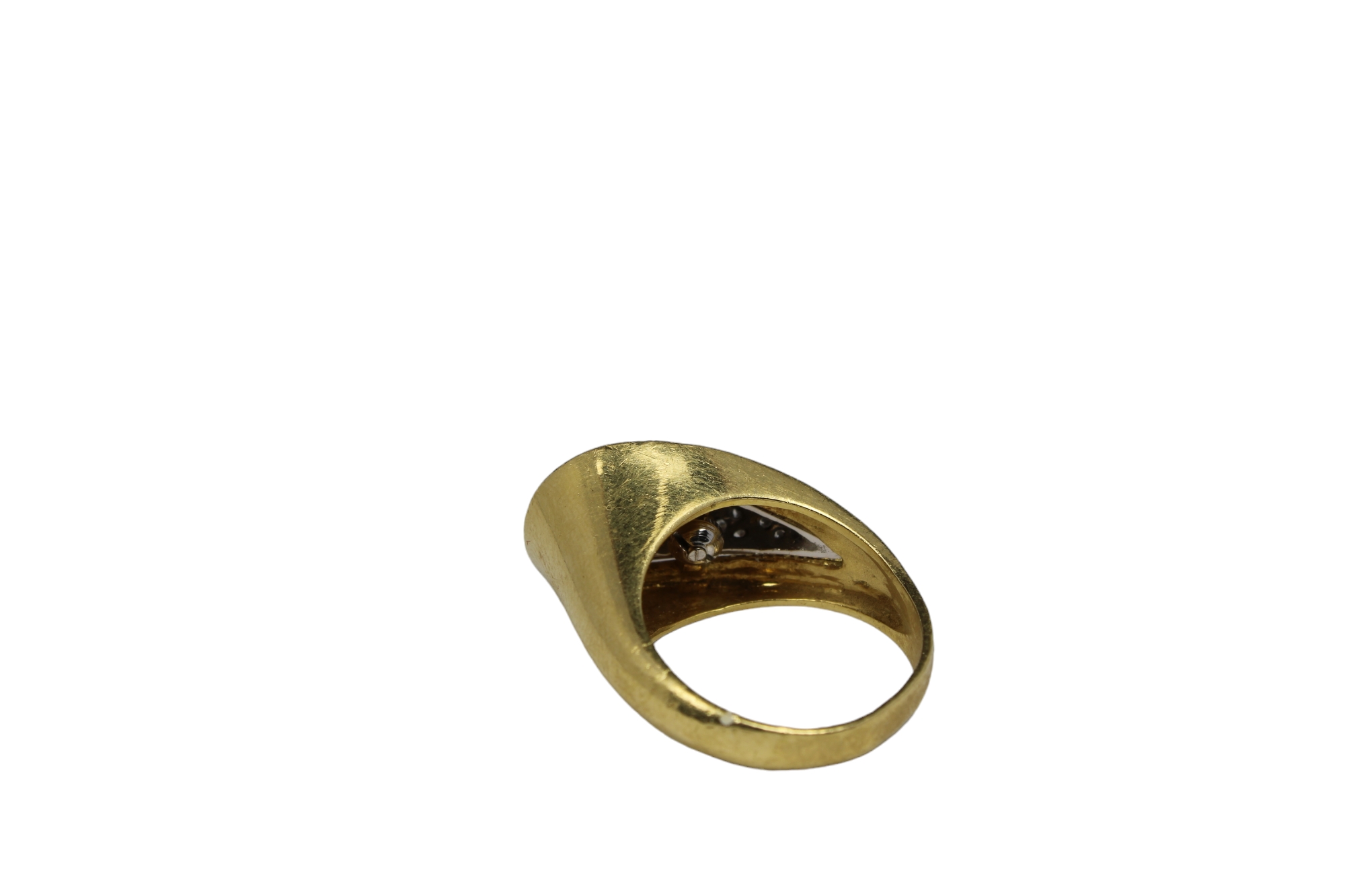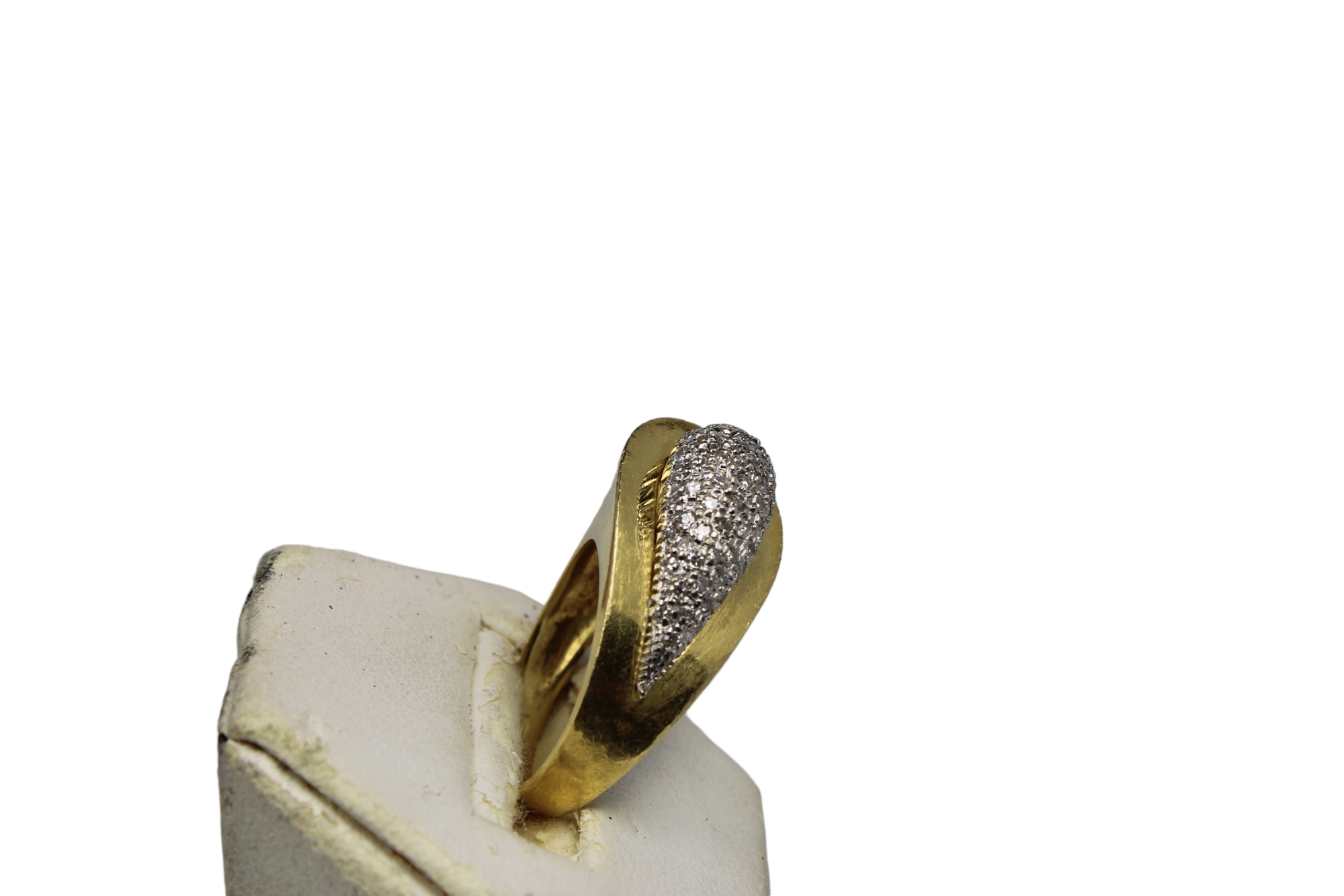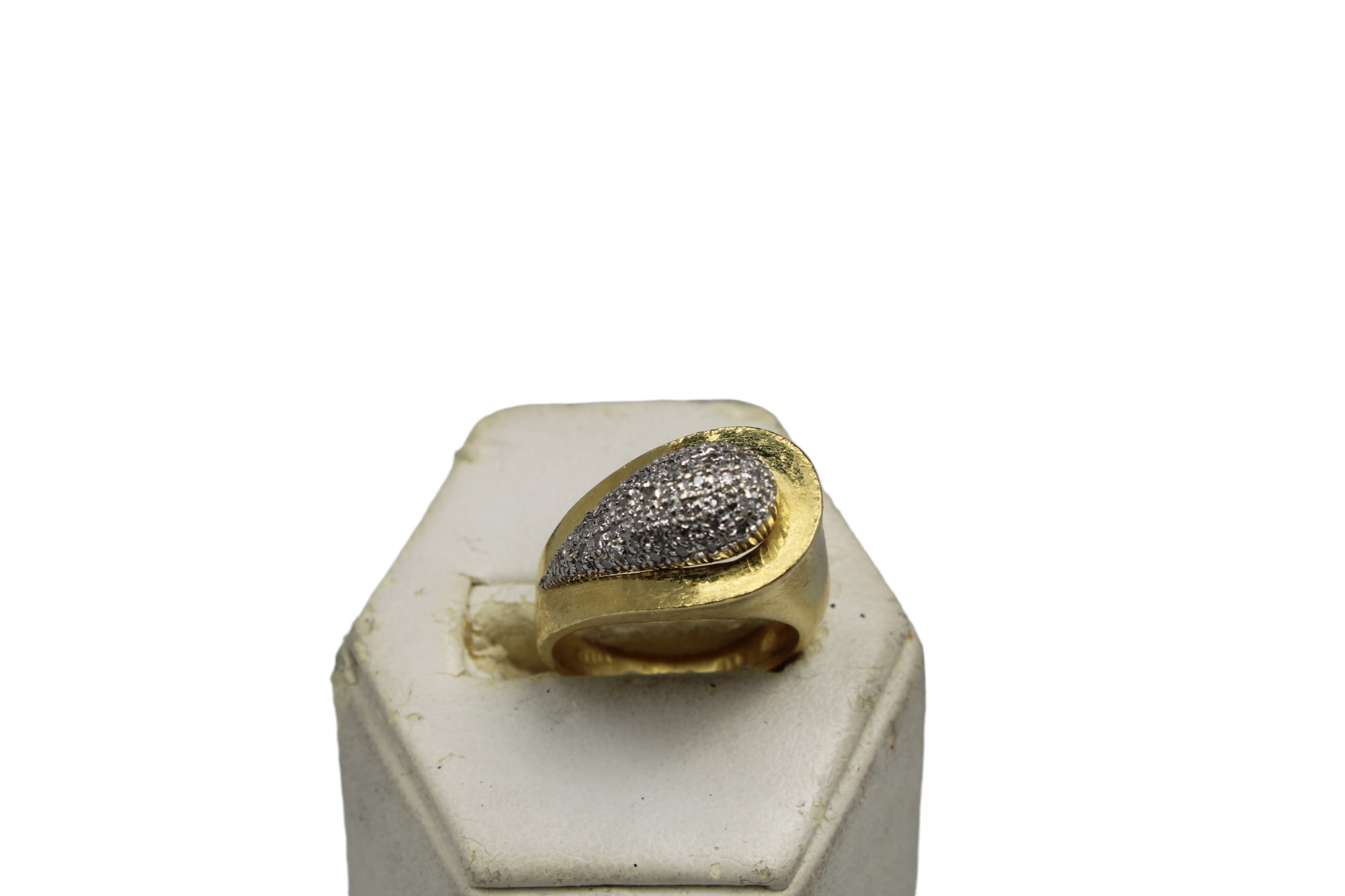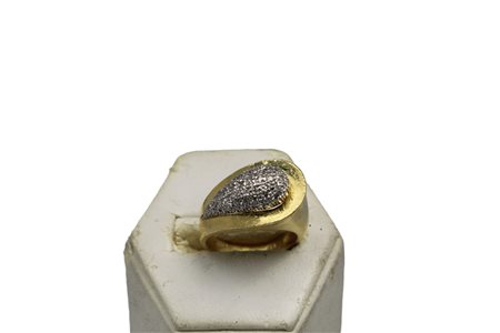 ANELLO in oro 18 k raffigurante goccia in oro bianco con brillantini su struttura in oro giallo brillantini di carati 0,30, grammi 5,4 anni 60