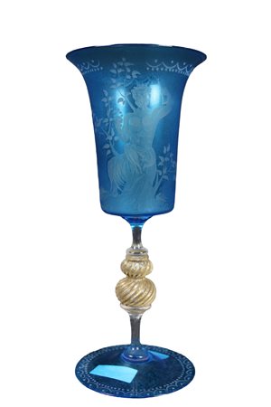 DUE BICCHIERI in vetro colorato manifattura di Murano Venezia XIX secolo h cm 24,5 x 10,5 / h cm 25 x 8