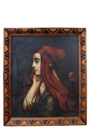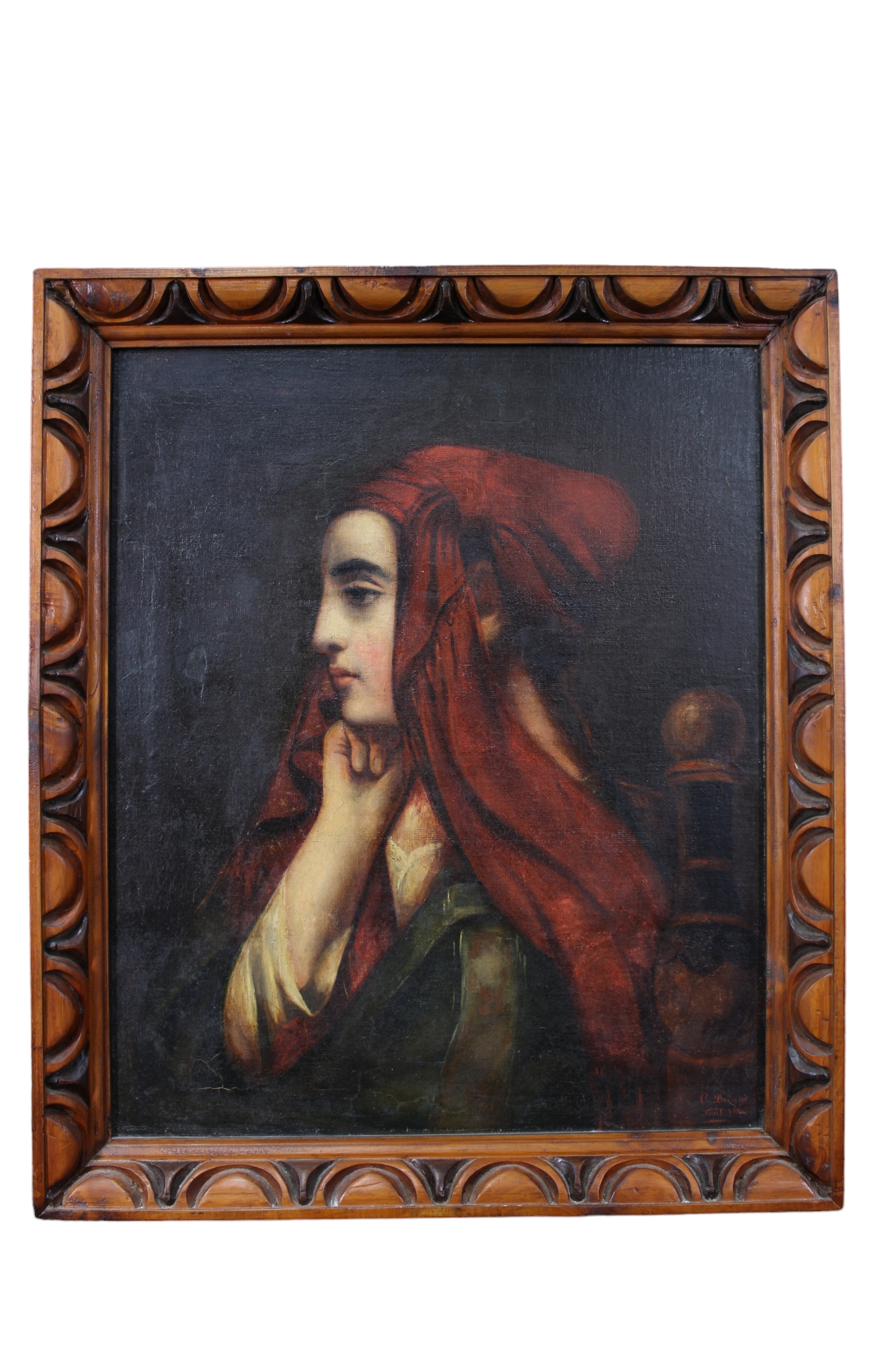 OLIO SU TELA raffigurante profilo di donna firmato e datato in basso a destra C. Brintot agosto 1850 Francia h cm 65 x 54 / cornice h cm 74,5 x 63,5