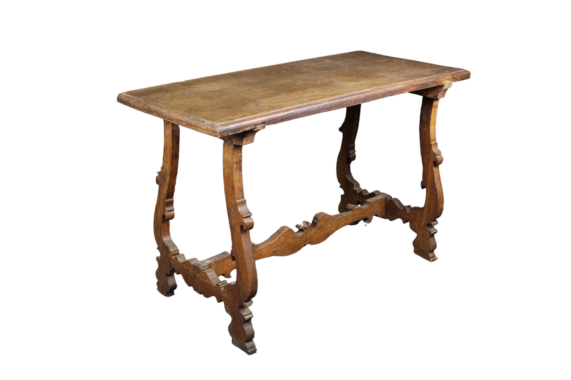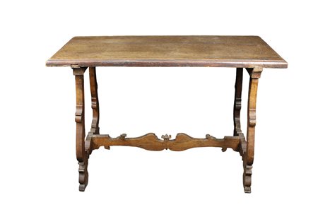TAVOLO FRATINO in legno di noce con gambe a lira e traversa maestranze Italiane XVIII Secolo h cm 81 x 121 x 60