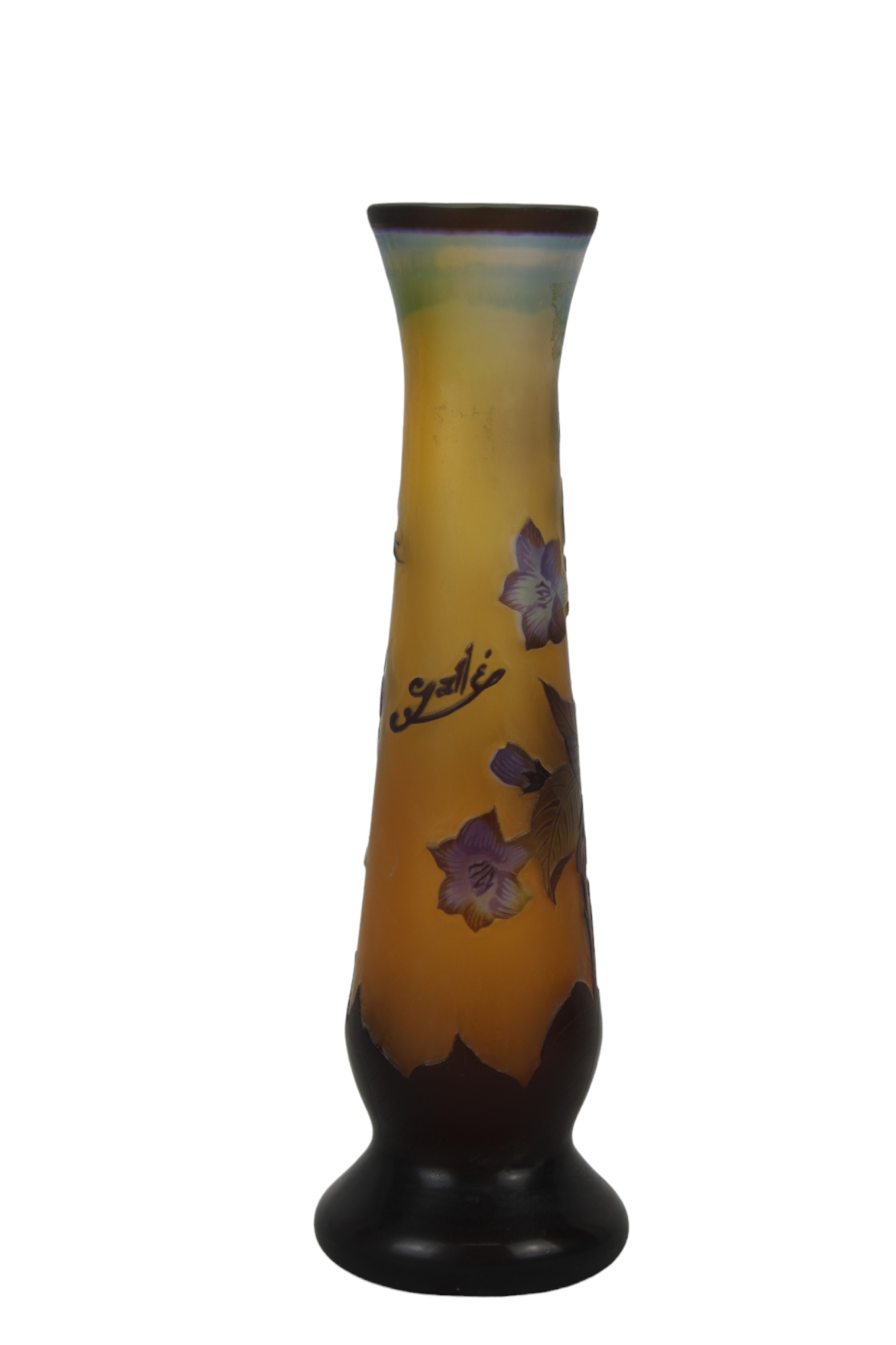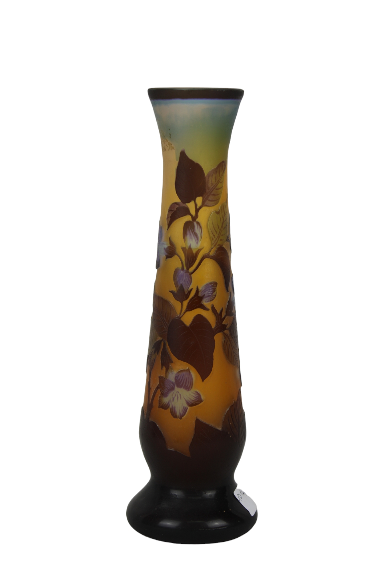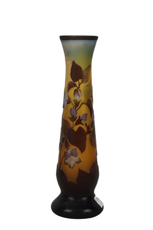 VASO in vetro satinato e inciso a firma Gallè Francia XX Secolo h cm 25 x 7,5