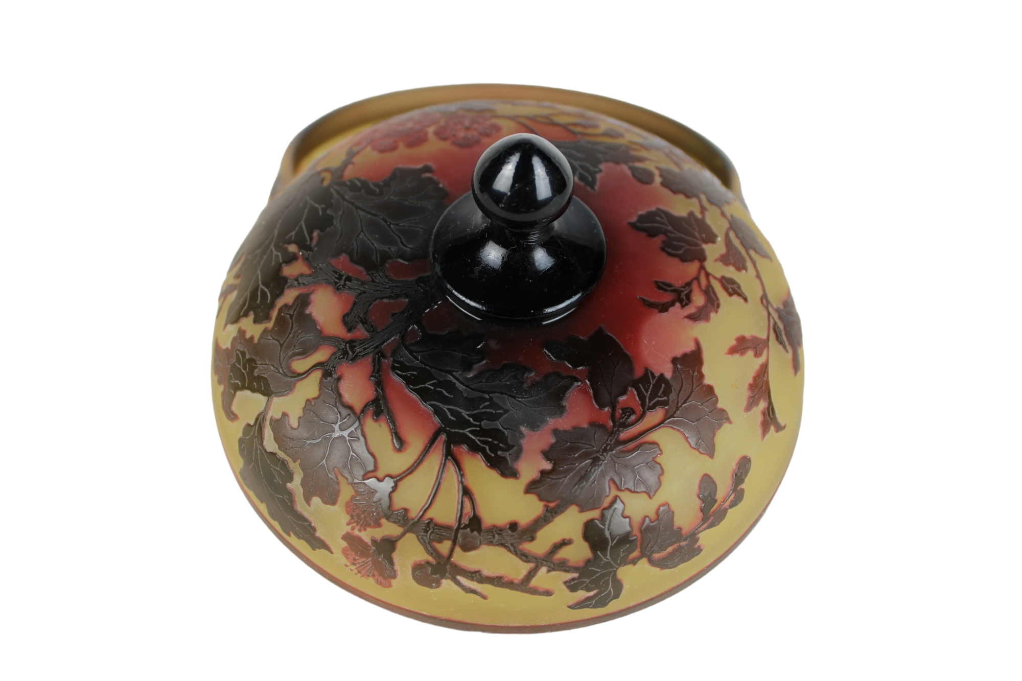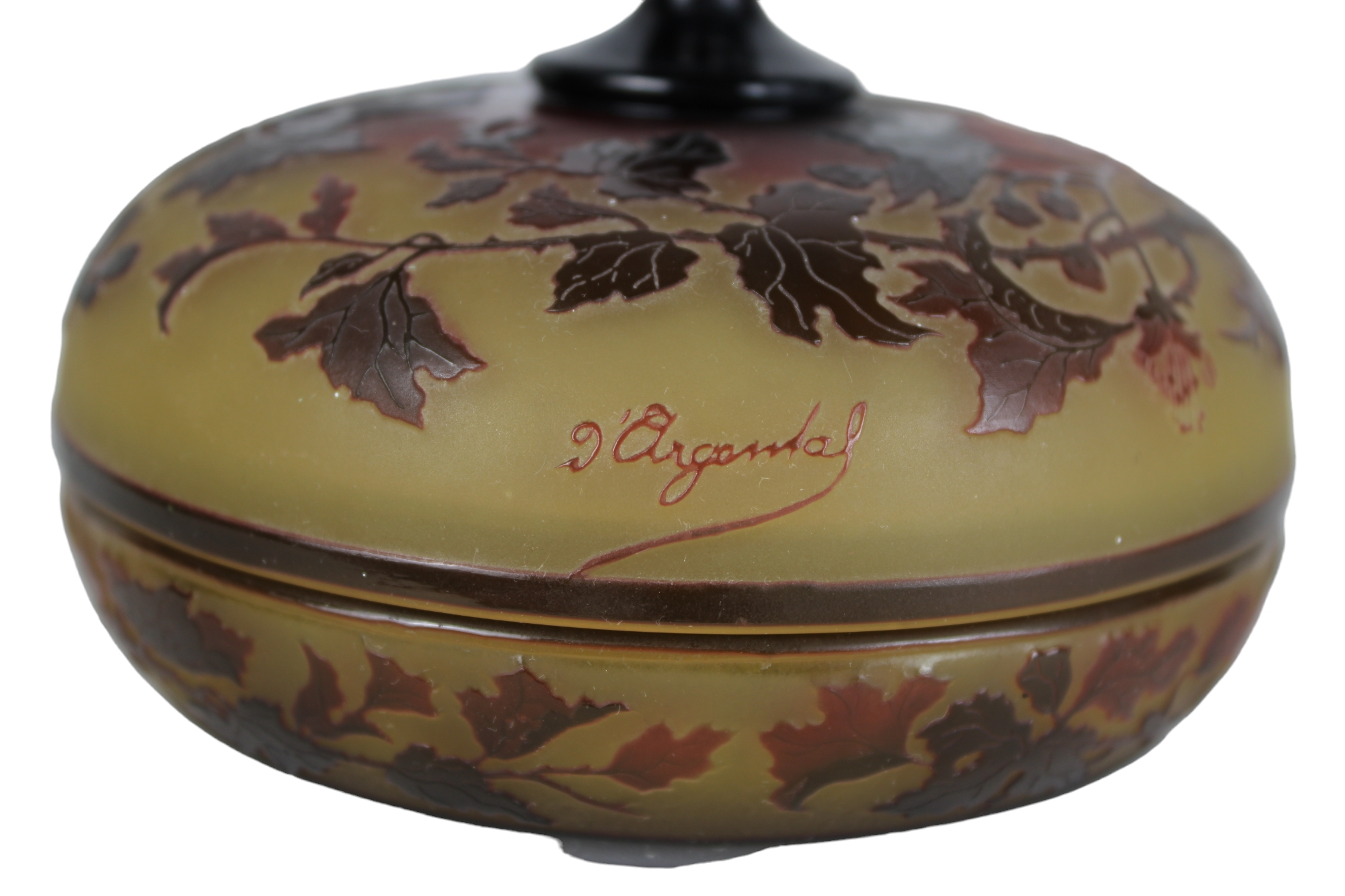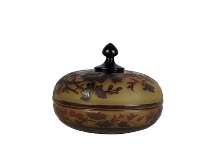 SCATOLA CON COPERCHIO in vetro inciso alla maniera Gallè a firma d'Argandal Francia Primi 900 h cm 10,5 x 13