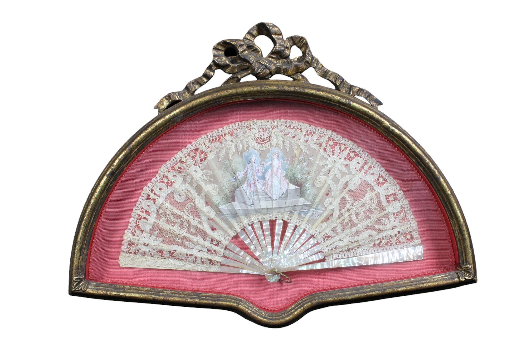LOTTO COMPOSTO DA 2 ventagli con stecche in madreperla dentro teche Francia XIX secolo h cm 40 x 53 / h cm 37 x 60,5
