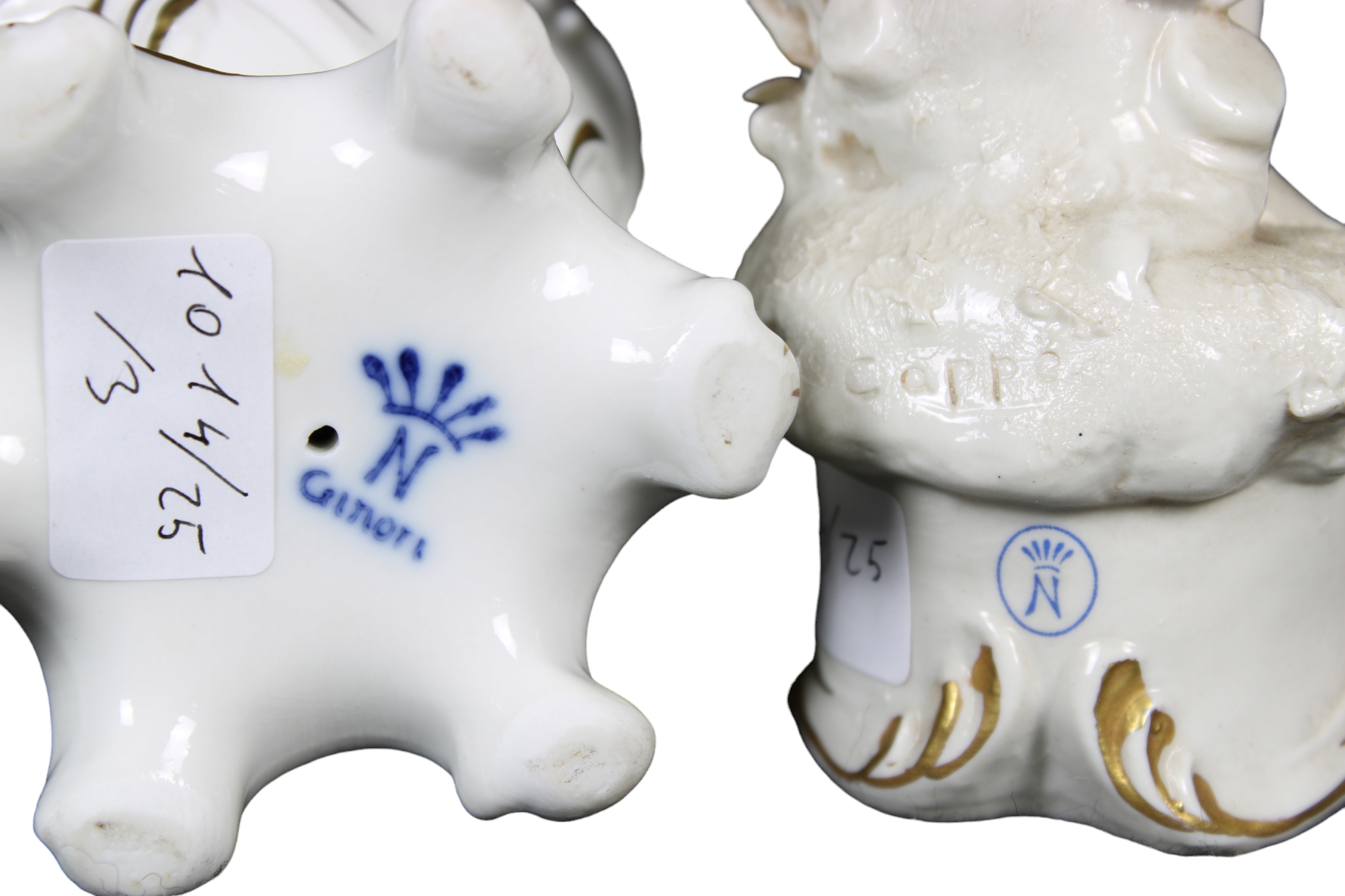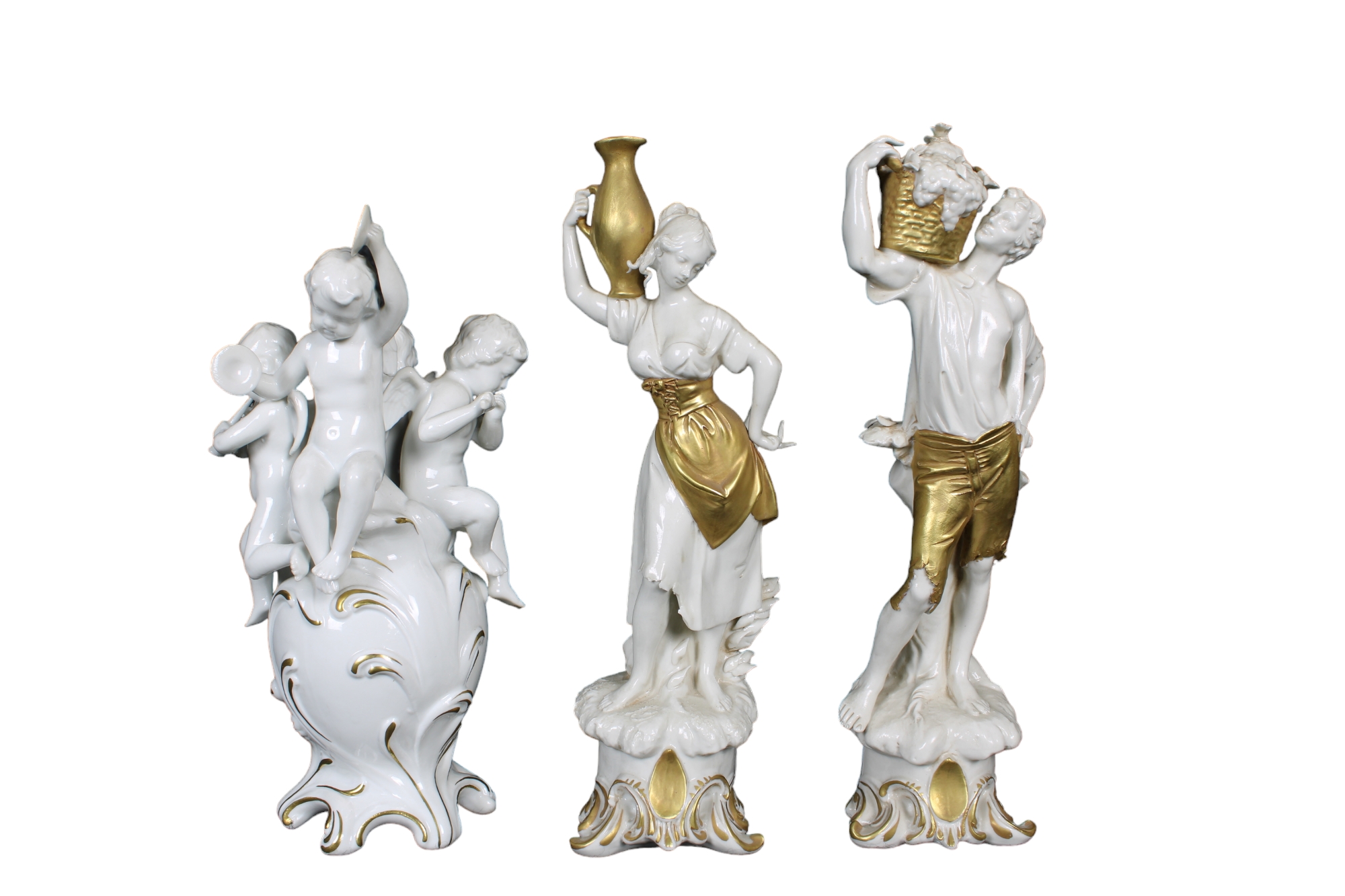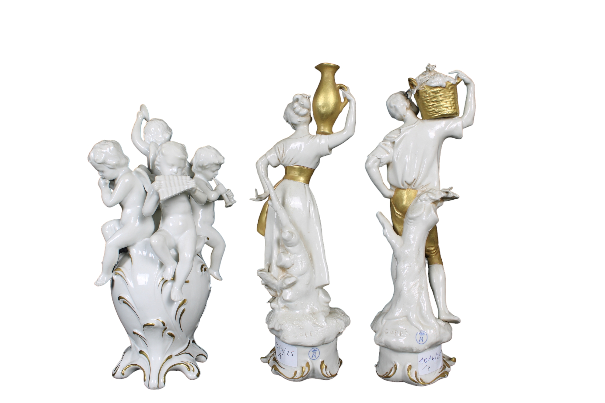LOTTO COMPOSTO DA 3 sculture in porcellana a fondo bianco e lumeggiature in oro manifattura Capodimonte Primi 900 h cm 23,5 / h cm 24 / h cm 21