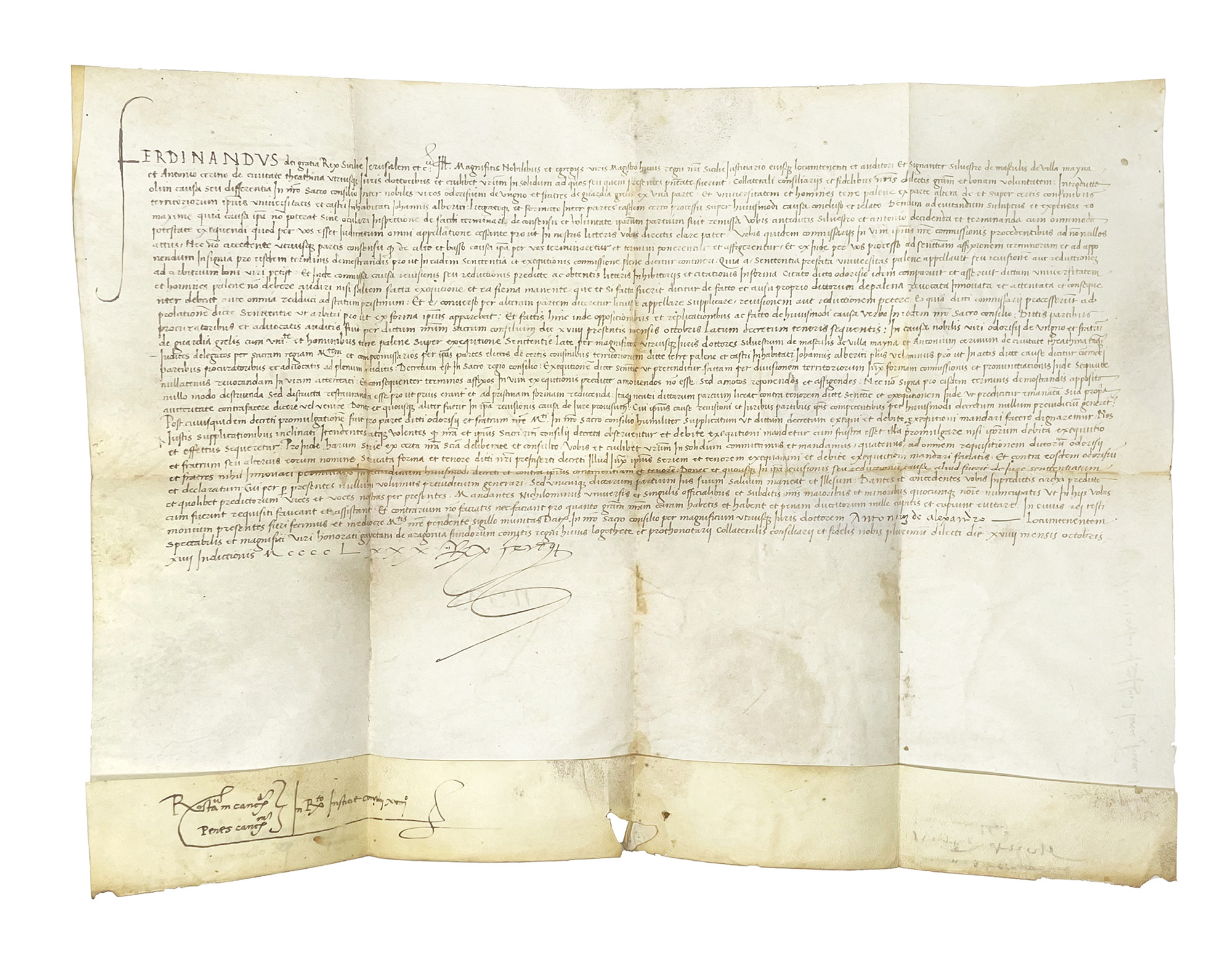 Aragona Ferdinando II, Privilegio su pergamena con intestazione Ferdinandus e...