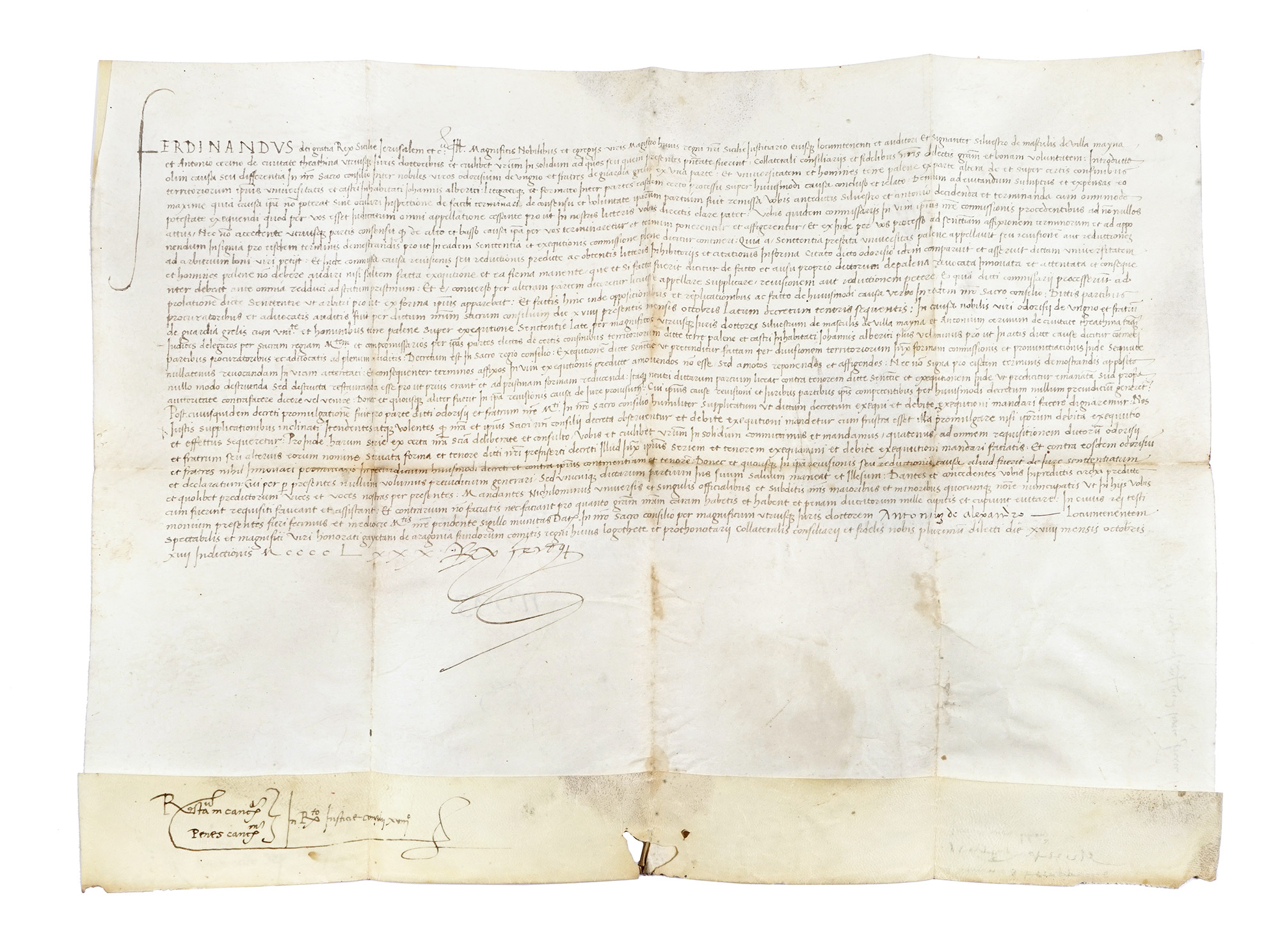Aragona Ferdinando II, Privilegio su pergamena con intestazione Ferdinandus e firma. Datato 19 ottobre 1480.