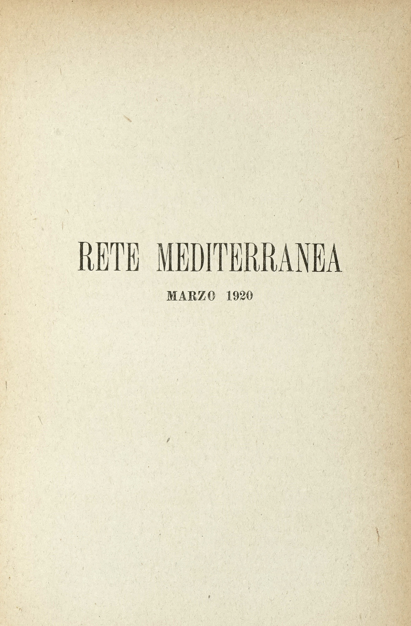 Soffici Ardengo, Rete Mediterranea (-tutto il pubblicato). Firenze: Vallecchi, 1920.