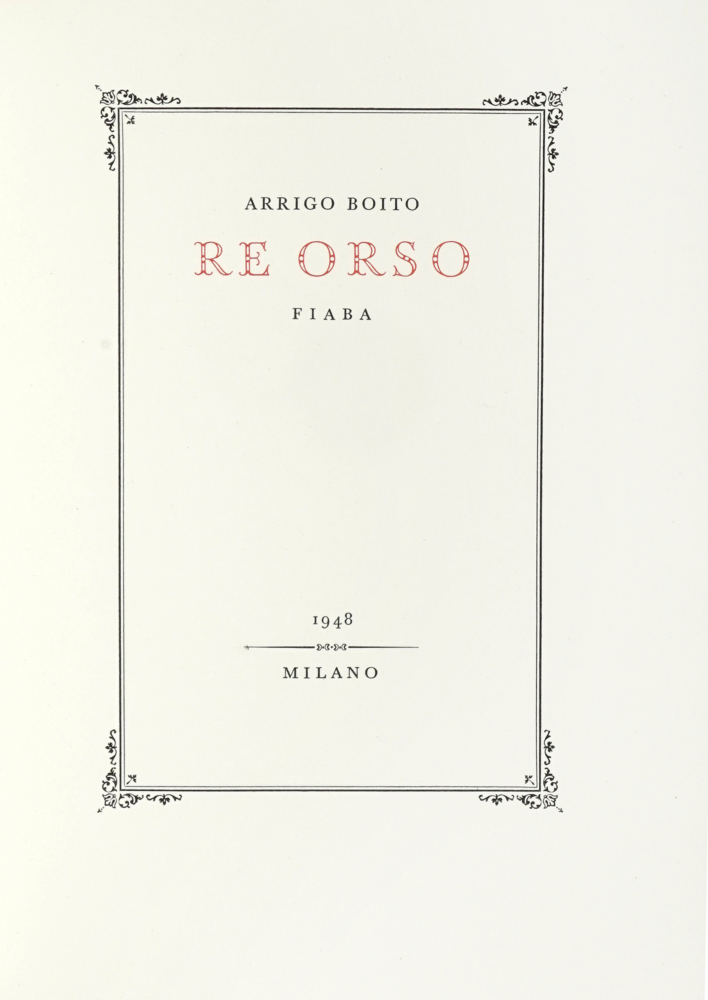 Boito Arrigo, Re Orso. Fiaba. Verona: Officina Bodoni, 1948.