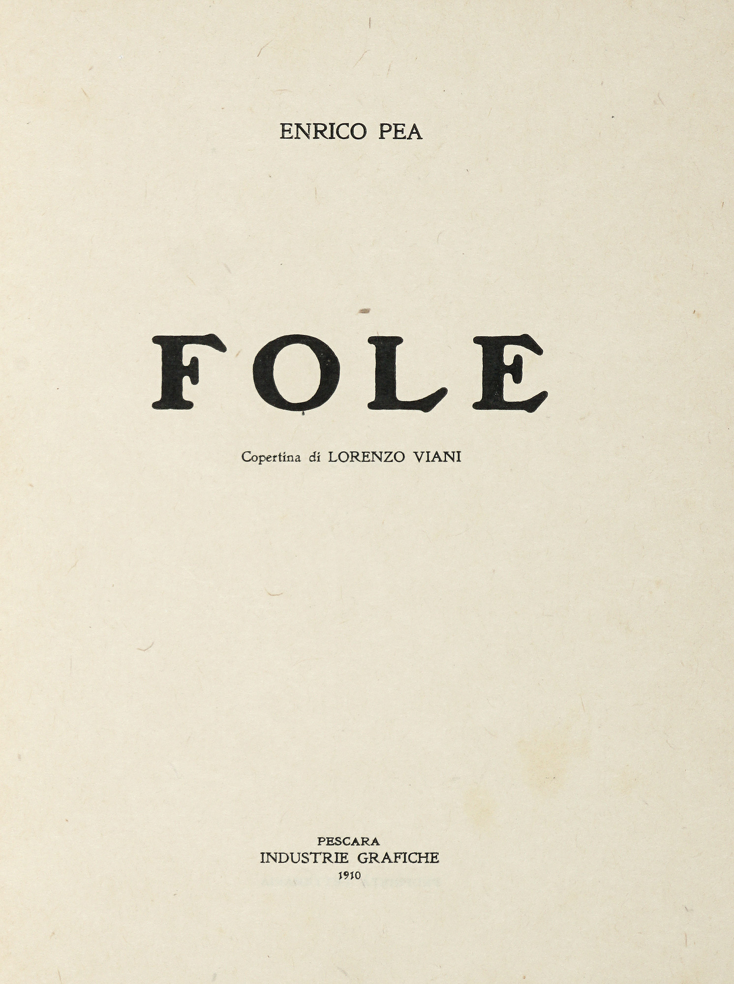 Pea Enrico, Fole. Pescara: Industrie Grafiche, 1910.