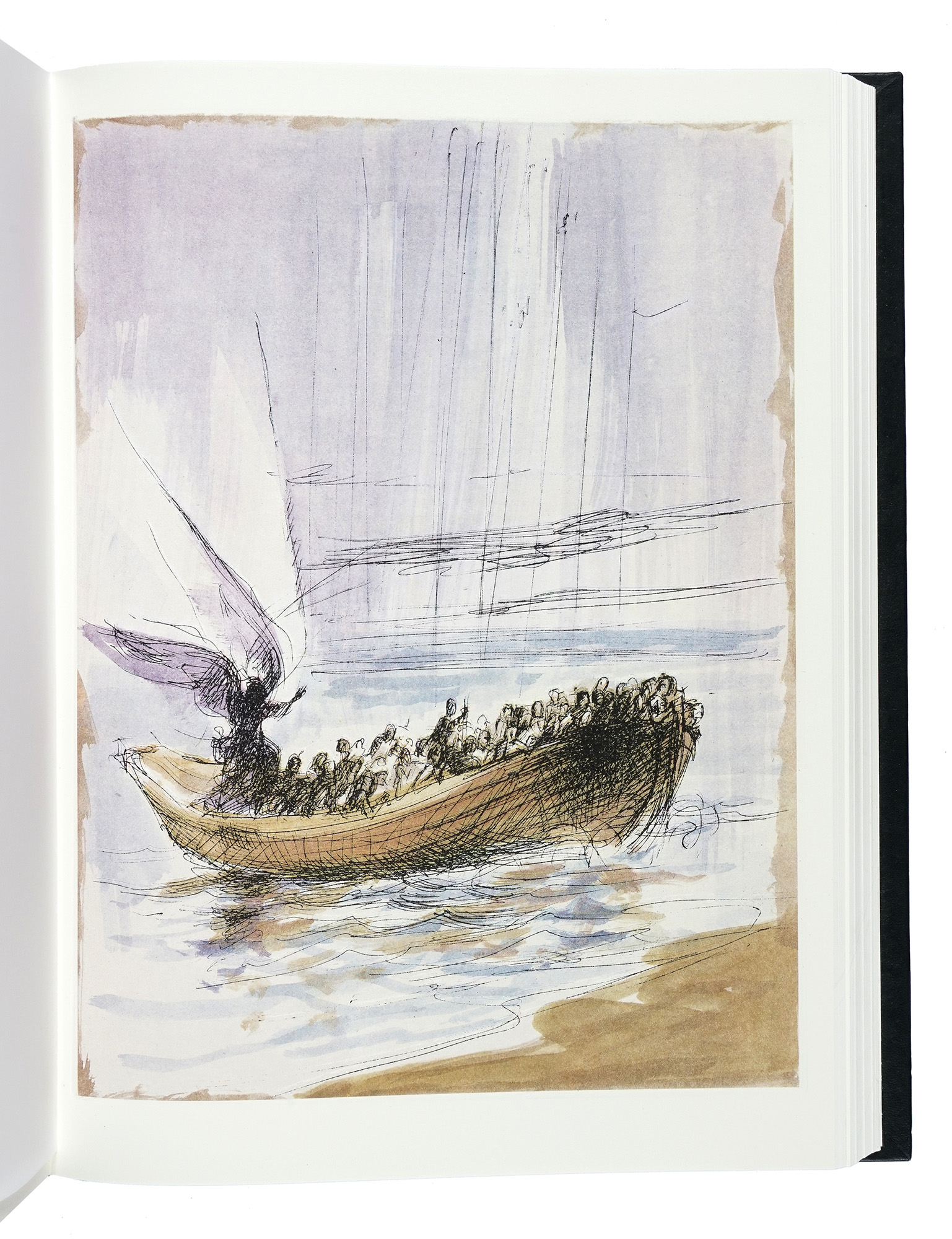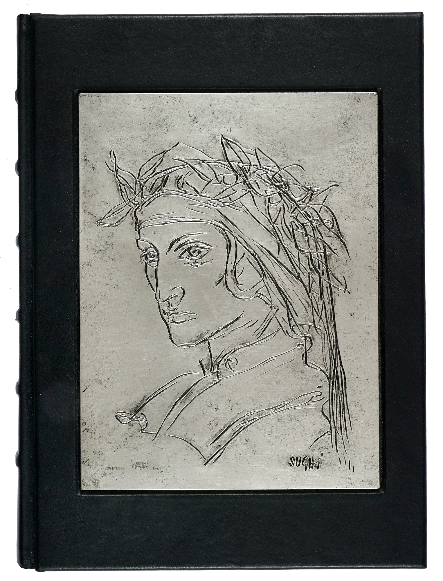In-folio (mm 452x315). Ottimo esemplare, con 10 belle acqueforti di Alberto Sughi a colori, fuori testo e protette da velina, due delle quali a doppia pagina. Legatura originale in piena pelle, con titoli in oro al dorso a sei nervi e con una scultura originale a bassorilievo realizzata in fusione, ricoperta in argento 925 millesimi e patinata con speciale procedimento manuale presso la Fonderia Artistica Farbel di Brescia, firmata e numerata dall'Artista. Uno dei 975 esemplari in numeri arabi, su una tiratura complessiva di 1050, firmate a matita da Sughi al colophon. (1)-