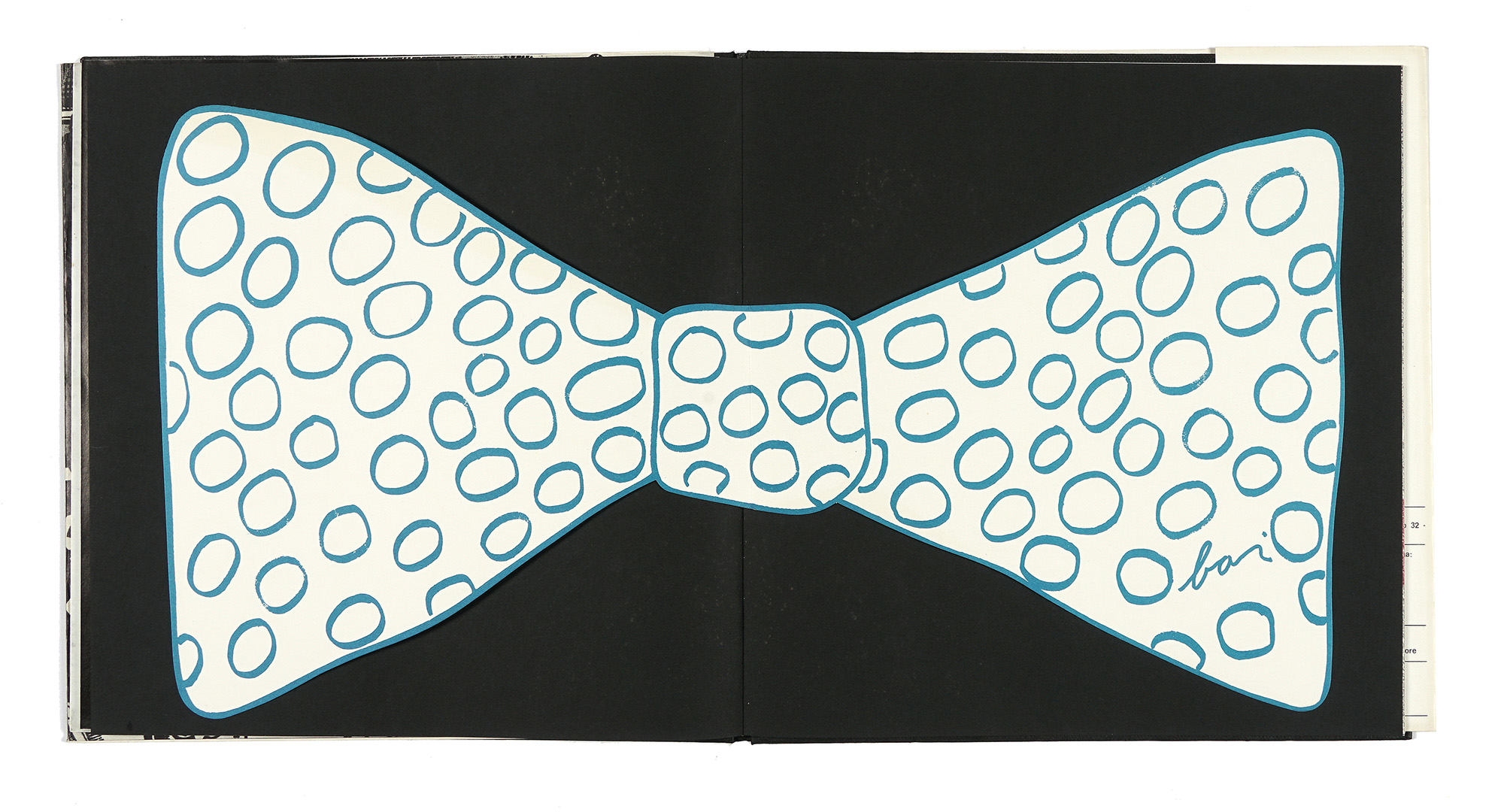 1 volume in-4° carrè (mm 300x300) profusamente illustrato in bianco e nero e a colori. Legatura editoriale in piena tela con sovraccoperta. Contenente: 1 farfallino a colori in carta, sciolto, e 1 multiplo 'cravatta' in plexiglass e vinile di Enrico Baj. Il tutto entro custodia originale in cartone illustrata al piatto; con difetti. (1)-