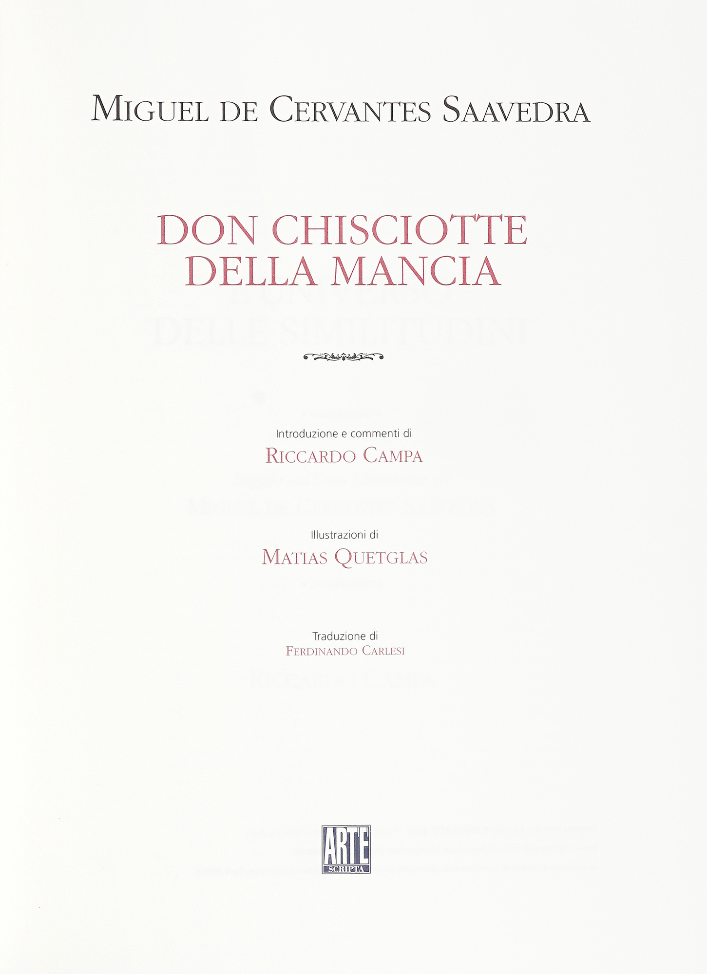 Cervantes Saavedra Miguel (de), Don Chisciotte della Mancia. [...] Illustrazioni di Matias Quetglas. Bologna: Art'è, 2001.