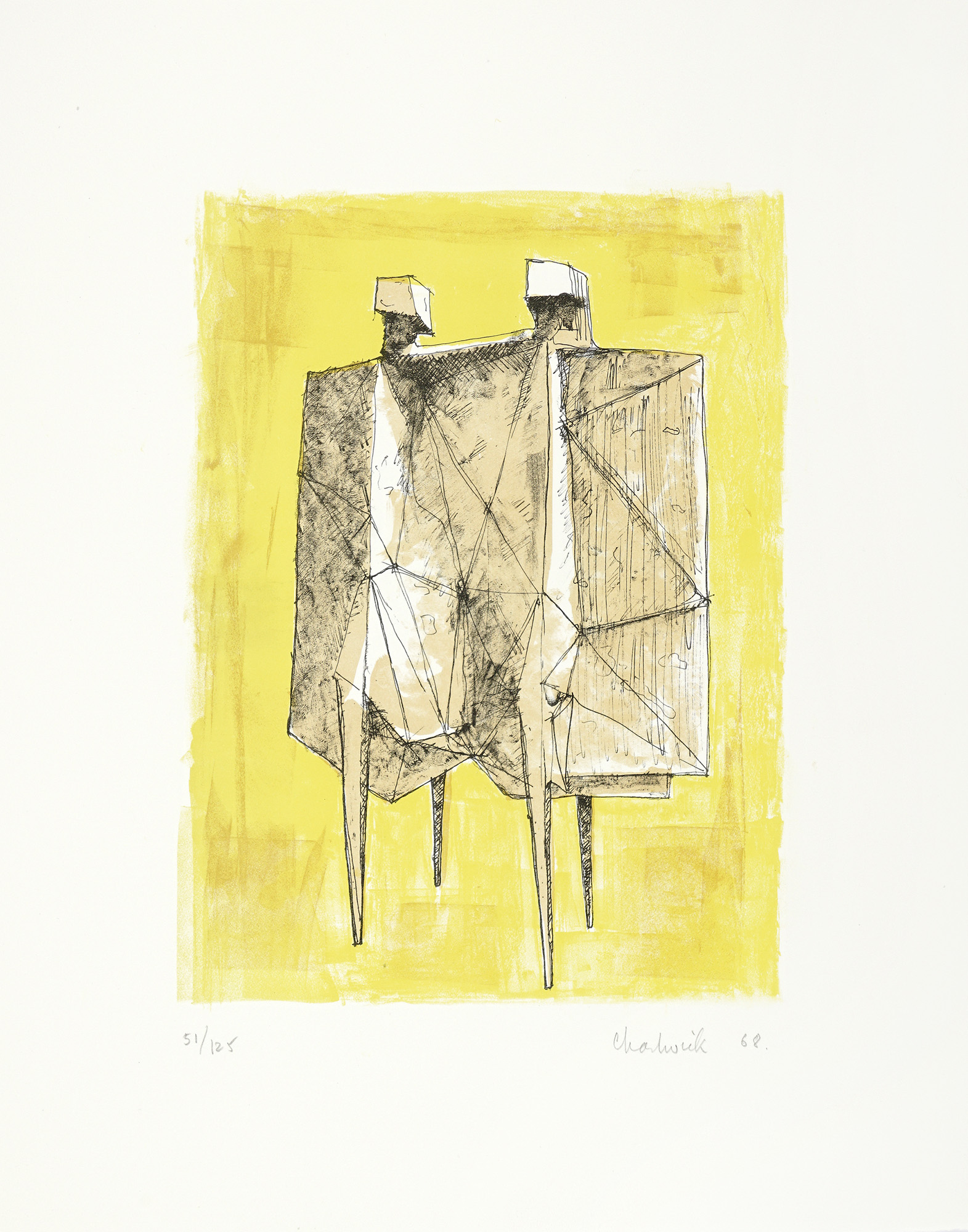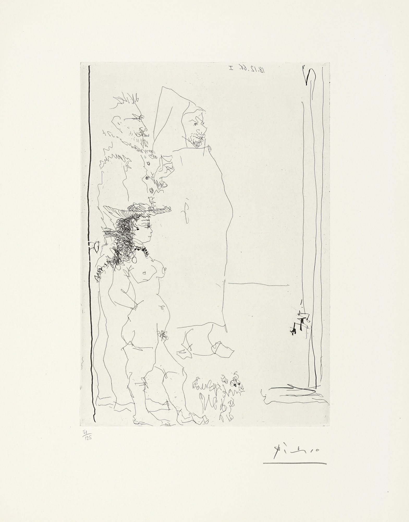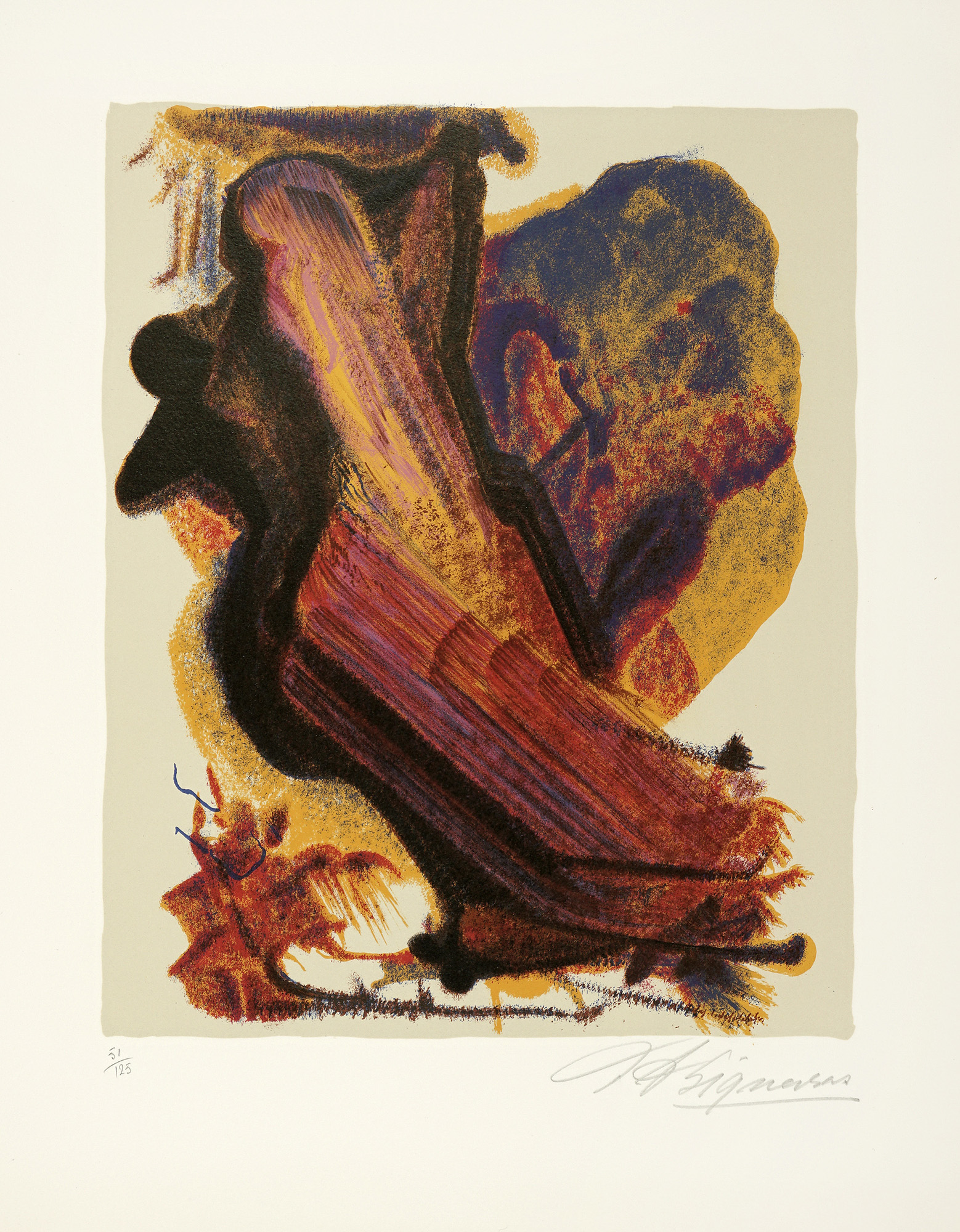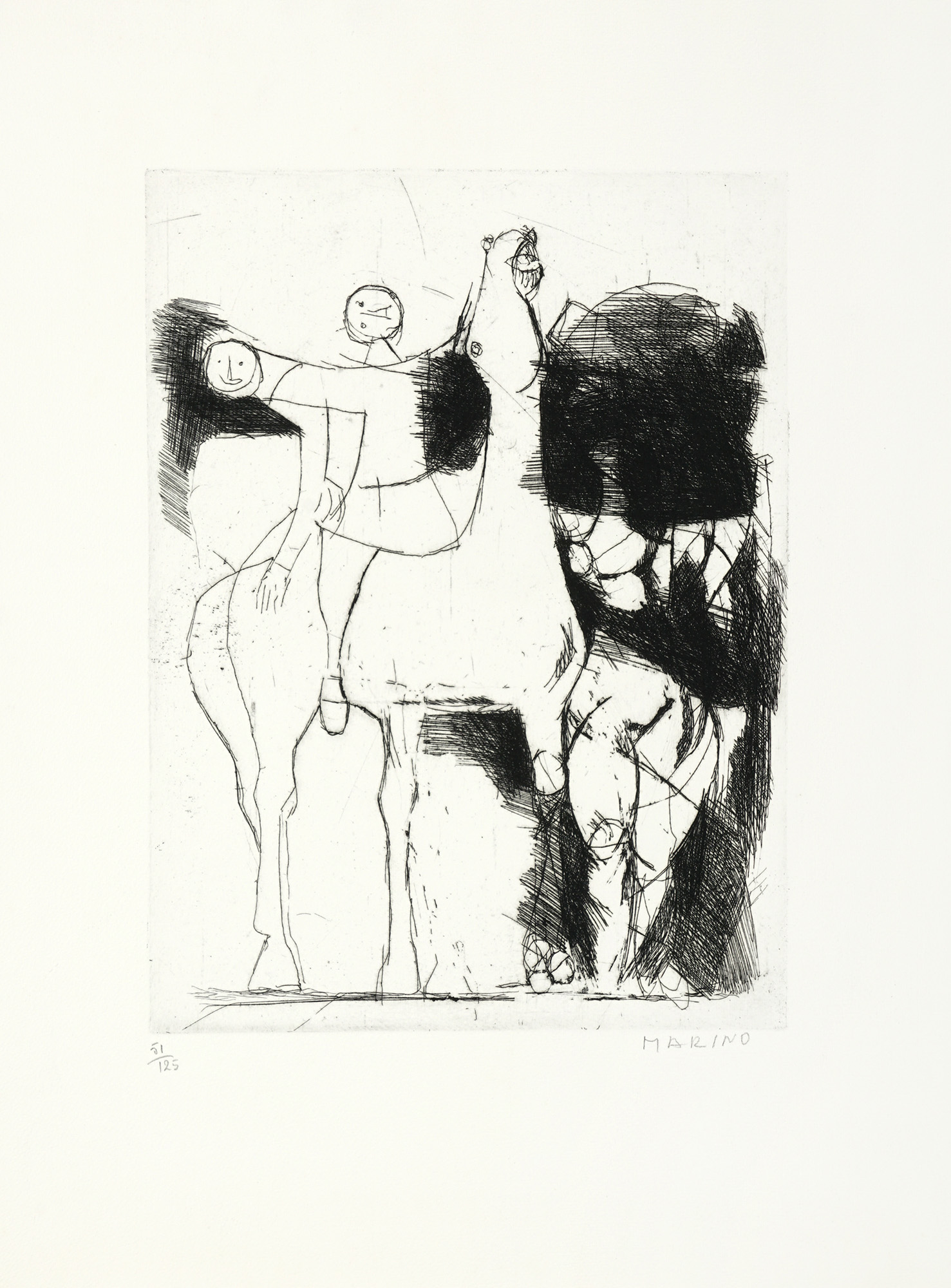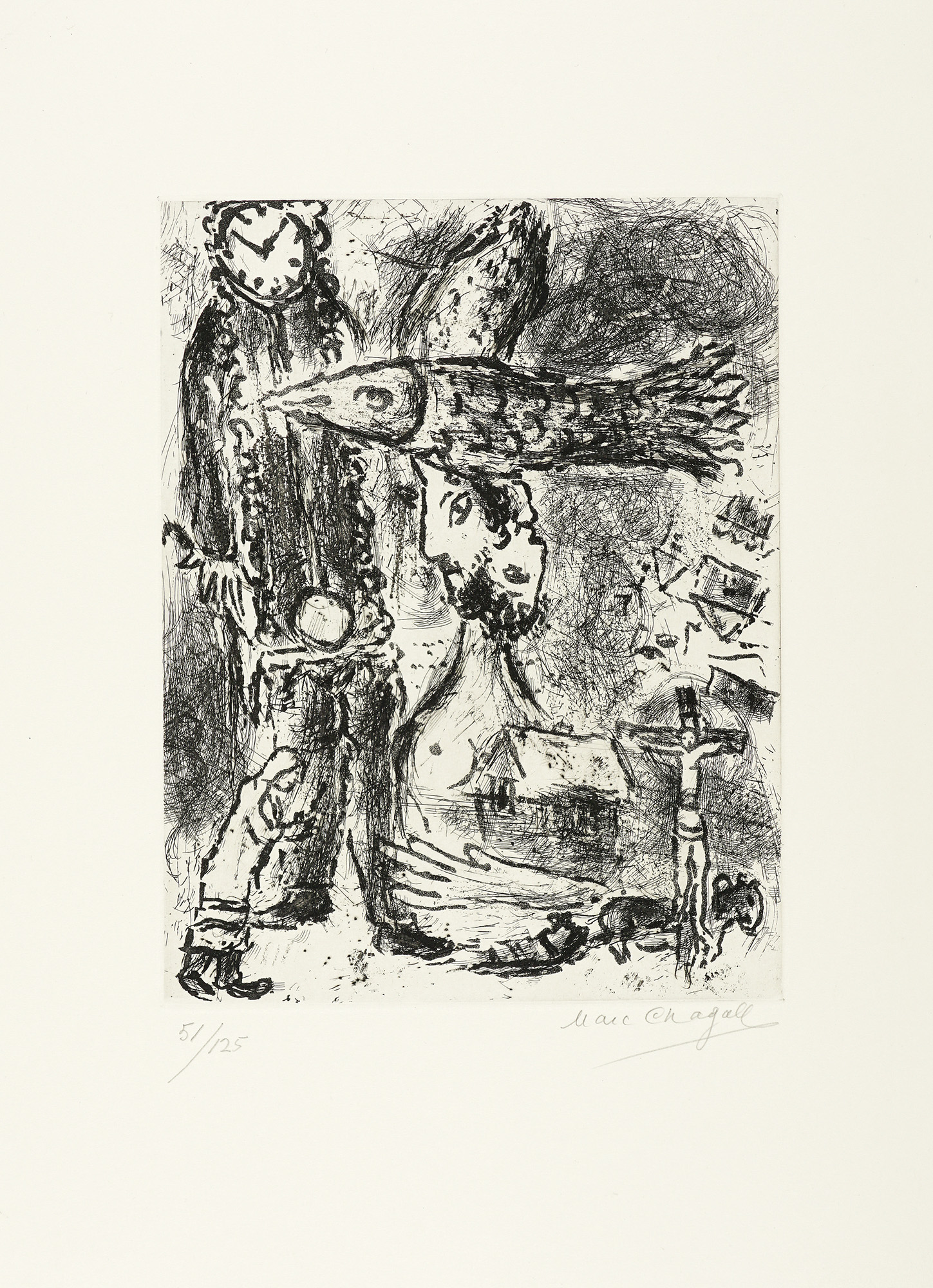 In-folio (mm 530x425). Pagine 14, [16] con, complessivamente, 9 acqueforti di Pablo Picasso, Henry Moore, Joan Miró, André Masson, Marino Marini, Max Ernst, André Dunoyer de Segonzac, Marc Chagall e Zao Wou-Ki, 2 litografie originali a colori di Lynn Chadwick e David Siqueiros firmate dagli Artisti e 4 riproduzioni a colori non firmate di Jean Arp, Georges Braque, Henri Matisse e Jacques Villon. Ciascuna numerata e protetta da velina, contenuta sciolta entro bifolio didascalico. Lievi ed uniformi bruniture ad alcune delle veline e all'incisione di Chagall, altrimenti ottimo esemplare a bifoli sciolti, perfettamente conservato entro brossura originale muta, protetta da velina, in splendida cartella editoriale in lino con piatti in legno e fermaglio di chiusura in metallo realizzato da Alexander Calder. Tiratura in 125 esemplari numerati, una delle 85 copie adibite alla vendita. (1)Opera realizzata per i trent'anni di attività di Gérald Cramer, libraio ed editore ginevrino, che ha prodotto alcuni dei libri d'artista più importanti del suo tempo.