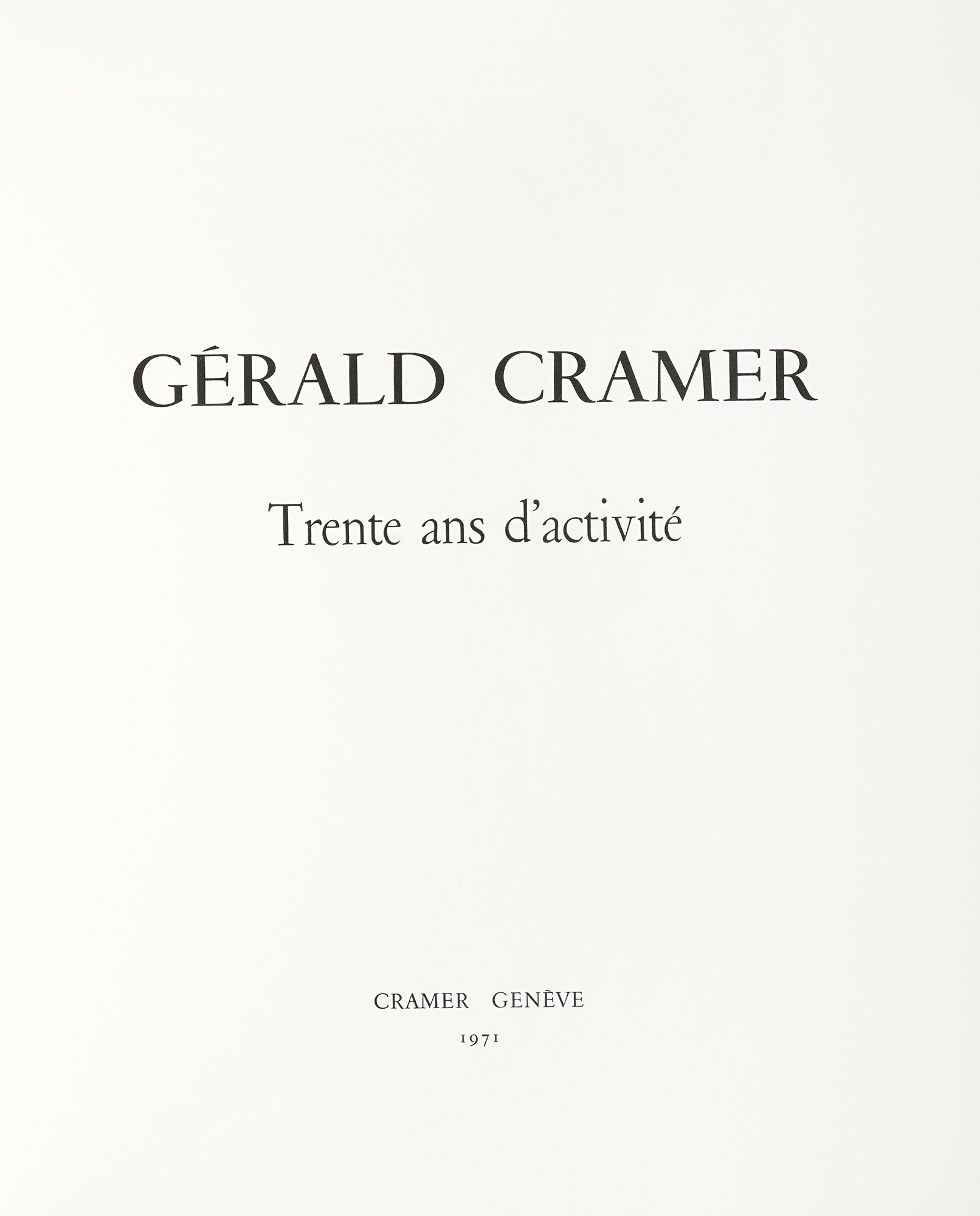 Cramer Gérald, Trente ans d'activité. Genève: Gérald Cramer, 1971.