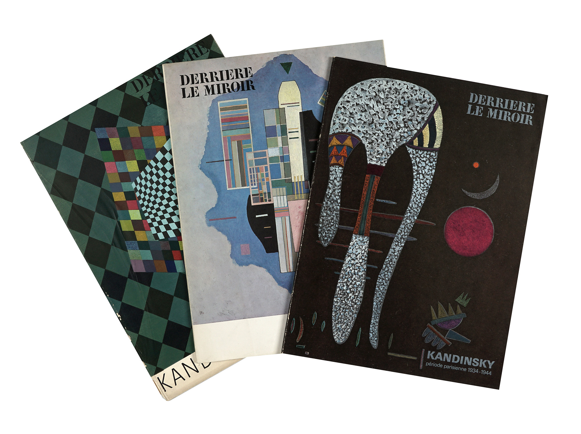 Compongono il lotto: 1) Derriere Le Miroir. N. 118. Kandinsky 1921-1927. Paris: Maeght Editeur, 1960. In-folio (mm 380x280). Con le litografie a colori di Vasilij Kandinskij, anche doppia pagina. Brossura editoriale illustrata, con mancanze al dorso; 2) Derriere Le Miroir. n. 154: Kandinskij Bauhaus de dessau 1927-1933. Paris: Maeght Editeur, 1965. In-folio (mm 380x284). Con numerose tavole a colori, anche a doppia pagina, da dipinti dell'Artista. Brossura editoriale illustrata, in buone condizioni di conservazione; 3) Derriere Le Miroir. N. 179: Kandinskij période parisienne 1934-1944. Paris: Maeght Editeur, 1969. In-folio (mm 380x284). Con numerose tavole a colori, anche a doppia pagina, da dipinti dell'Artista. Brossura editoriale illustrata, in buone condizioni di conservazione. (3)I OPERA: Vedi lotto precedente.