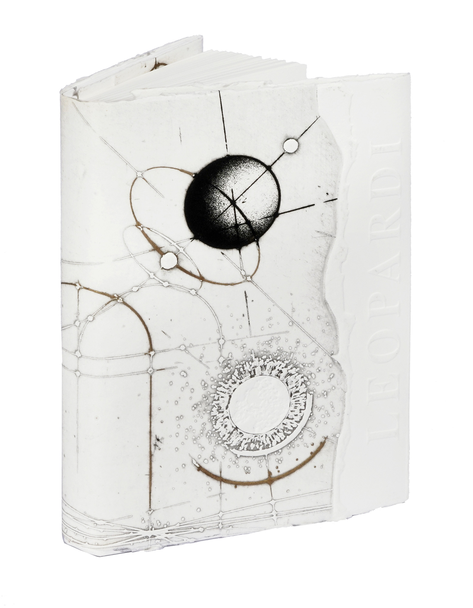 In-8° (mm 247x165). Legatura originale in pieno cartonato, con una splendida acquaforte di Walter Valentini alla sovraccoperta, numerata e firmata a matita dall'Artista. Conservate all'interno le veline originali. Opera perfettamente conservata entro cofanetto originale in plexiglass, con lievi segni di usura. (1)Elegante e raffinata edizione, realizzata nel secondo centenario della nascita di Giacomo Leopardi, con la collaborazione del Centro Nazionale di Studi leopardiani di Recanati.