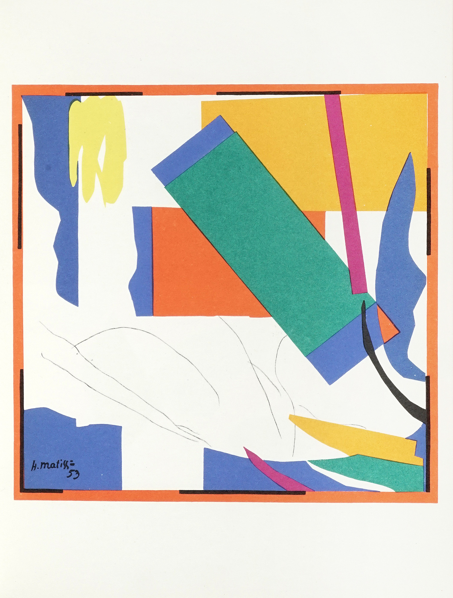 (4)I OPERA: Il papier découpé è un tipo di collage inventato da Matisse negli anni Quaranta. II OPERA: Tiratura in 1500 esemplari numerati. III OPERA: Tiratura in 1000 esemplari, con una litografia originale di Miró ai piatti, stampata a Parigi nell'officina di Fernand Mourlot.