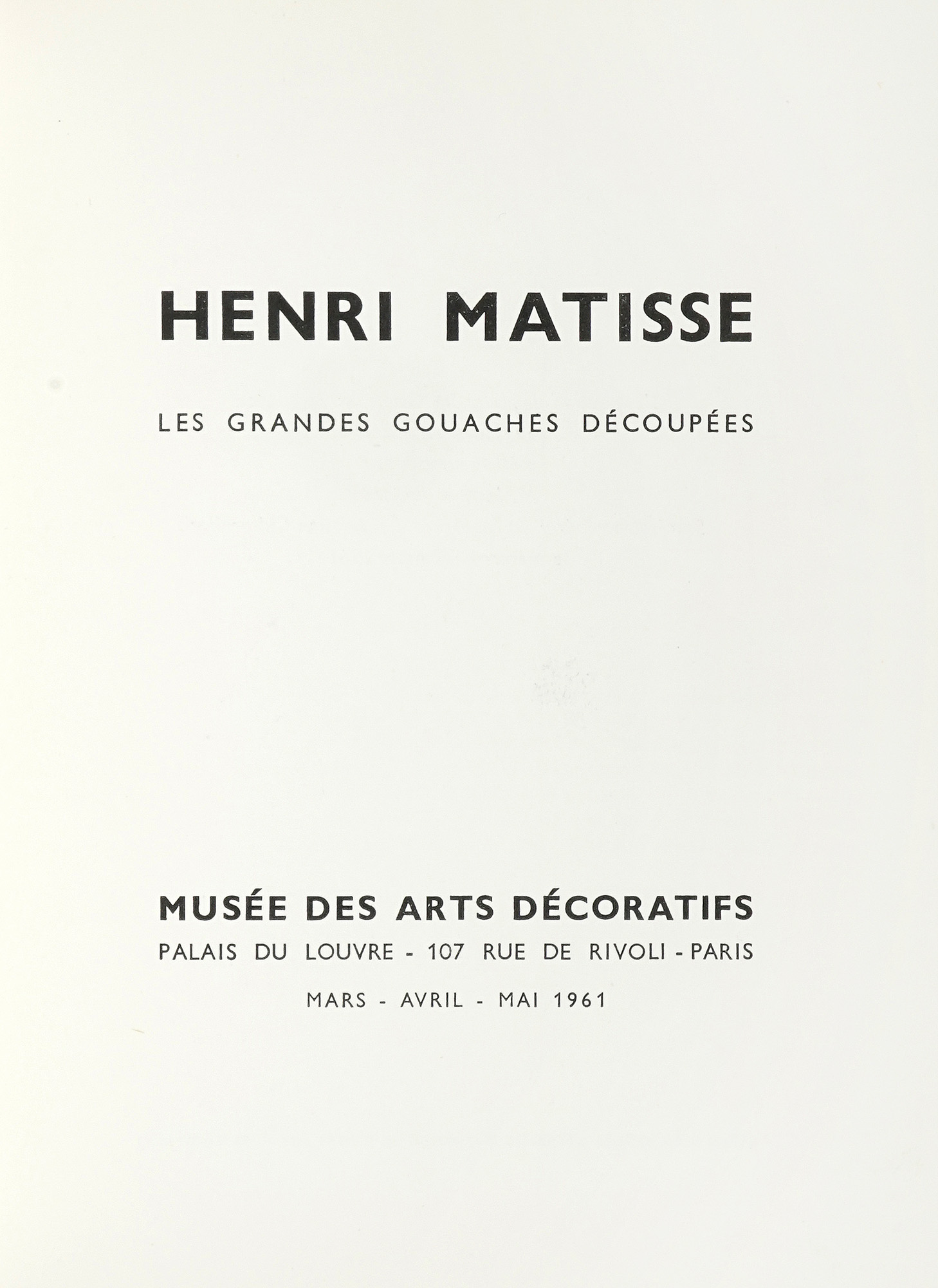 Matisse Henri, Les grandes gouaches decoupées. Paris: Musée des arts décoratifs, 1961.