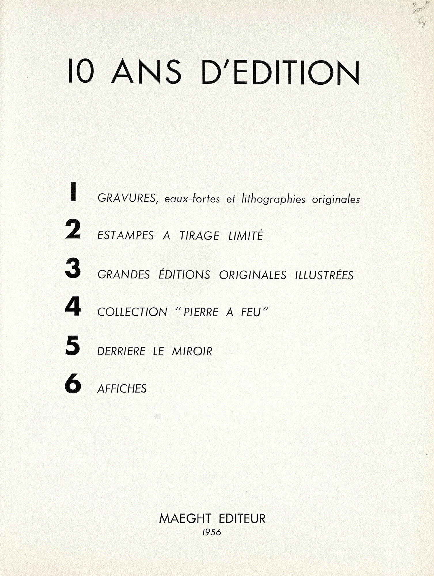 Miró Joan e altri, Derriere Le Miroir: 10 Ans d’Edition 1946-1956. Paris: Maeght Editeur, 1956.