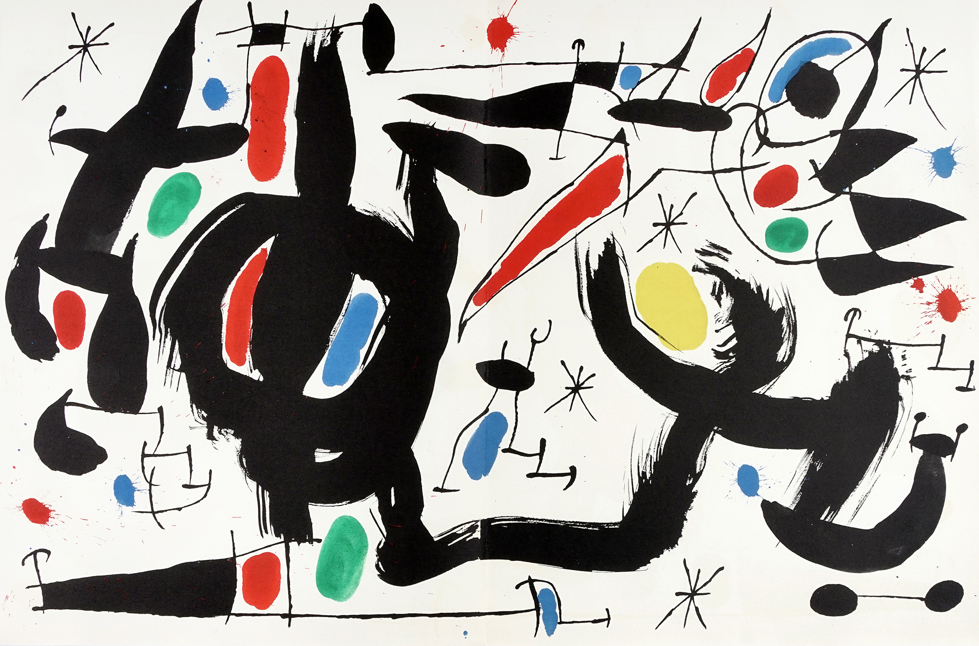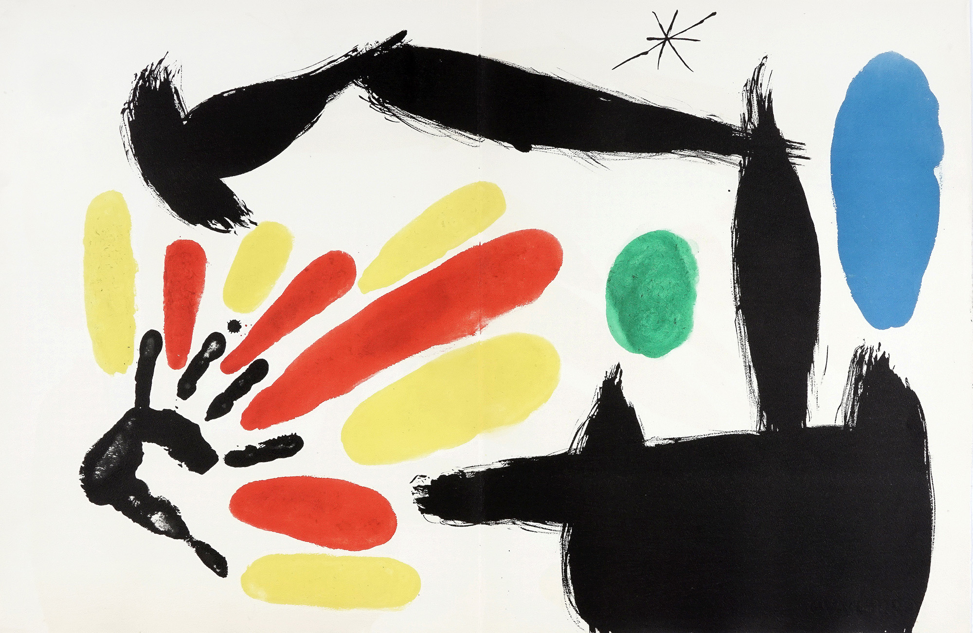 In-folio (mm 500x380). Con, complessivamente, 11 litografie originali di Joan Miró, in nero e a colori, di cui 3 a doppia pagina. Brossura originale interamente litografata. Il tutto perfettamente conservato entro cartella e cofanetto originali in piena tela arancione coordinata, entrambi illustrati da Miró. Segni di usura al cofanetto. Uno dei 1000 esemplari numerati da 101 a 1100, e firmati dall'Artista al colophon, su una tiratura complessiva di 1120 copie. (1)Cfr. Cramer, Miró, p. 163.