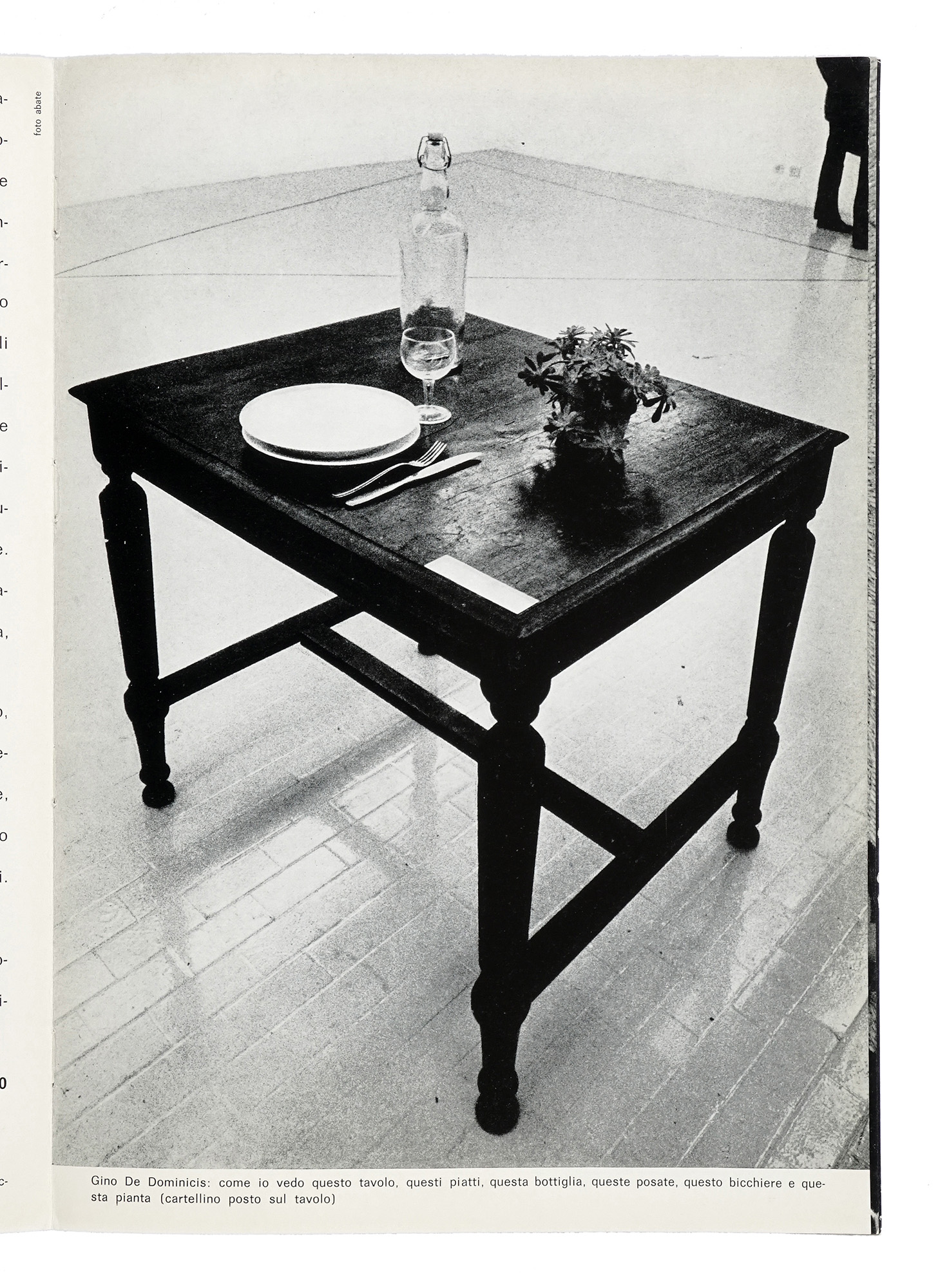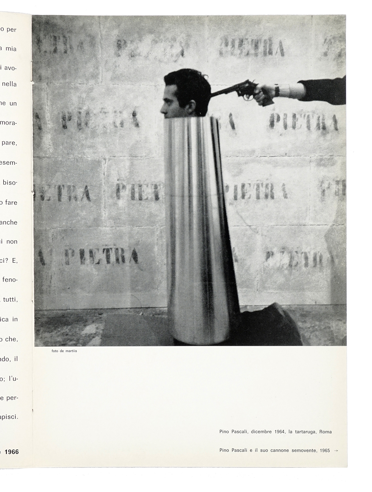 In-4° (mm 330x230). Con decine di riproduzioni fotografiche in bianco e nero, gran parte a piena pagina, nel testo. Brossura editoriale con titoli al piatto anteriore e al dorso. Minime mancanze al dorso e altri lievi difetti, altrimenti buona conservazione. (1)Raccolta di documenti sull'attività della Galleria L'attico di Roma, con numerose fotografie a piena pagina; la serie numerica che si legge nel titolo si riferisce al periodo storico che il testo affronta, con testimonianze fotografiche e letterarie degli artisti che parteciparono alla vita della Galleria negli anni in questione. La prefazione è di Fabio Sargentini, animatore e proprietario della galleria, gli scritti di Claudio Cintoli, Pino Pascali, La Monte Young, Achille Bonito Oliva, Sol Lewitt, Vittorio Rubiu e Maurizio Calvesi; le fotografie di Mario Cresci, Claudio Abate, Paolo Mussat Sartor, Ugo Mulas.