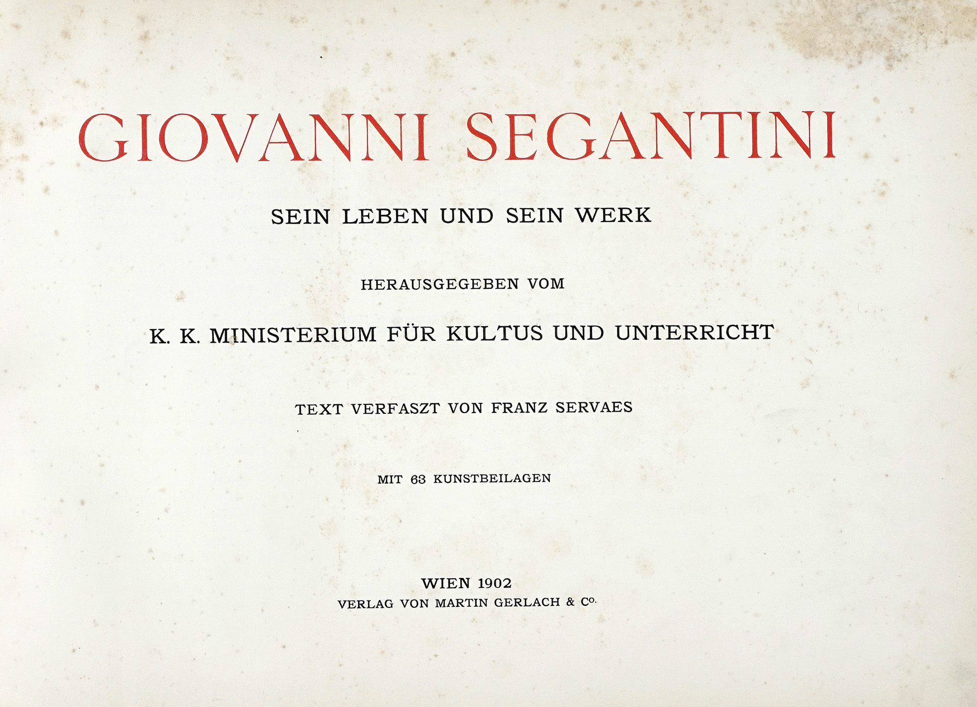 Segantini Giovanni, Giovanni Segantini sein leben und sein werk [...] text verfaszt von Franz Servaes. Wien: Verlag von Martin Gerlach, 1902.