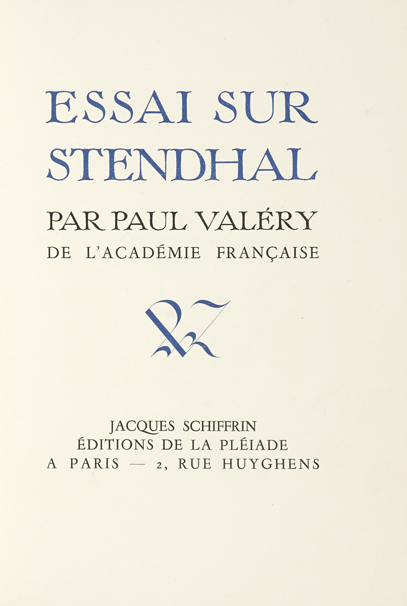 Valéry Paul, Essai sur Stendhal. Paris: Jacques Schiffrin Éditions de la Pléiade, 1927.
