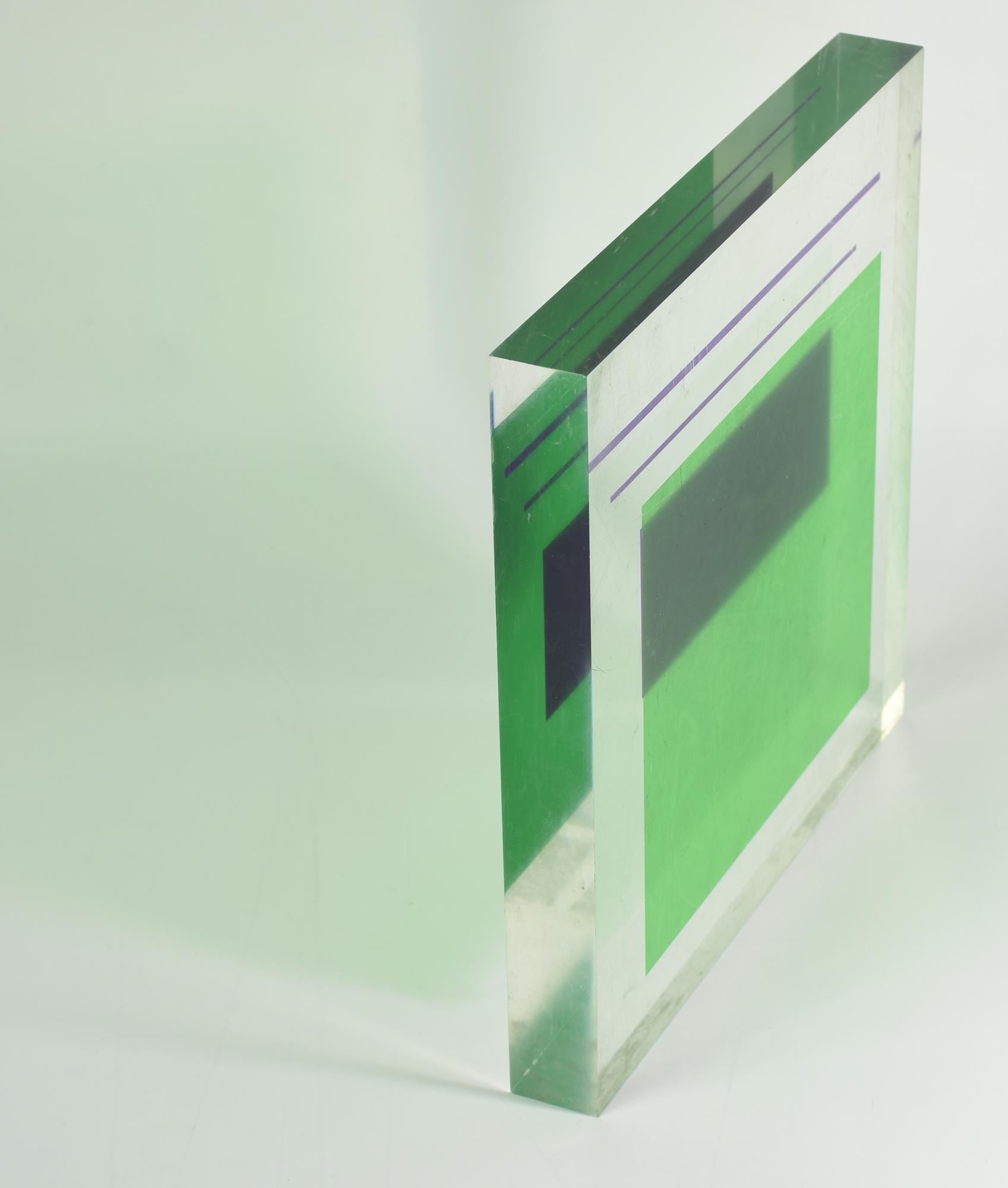 scultura in plexiglass con applicazioni, cm 26x26x3
