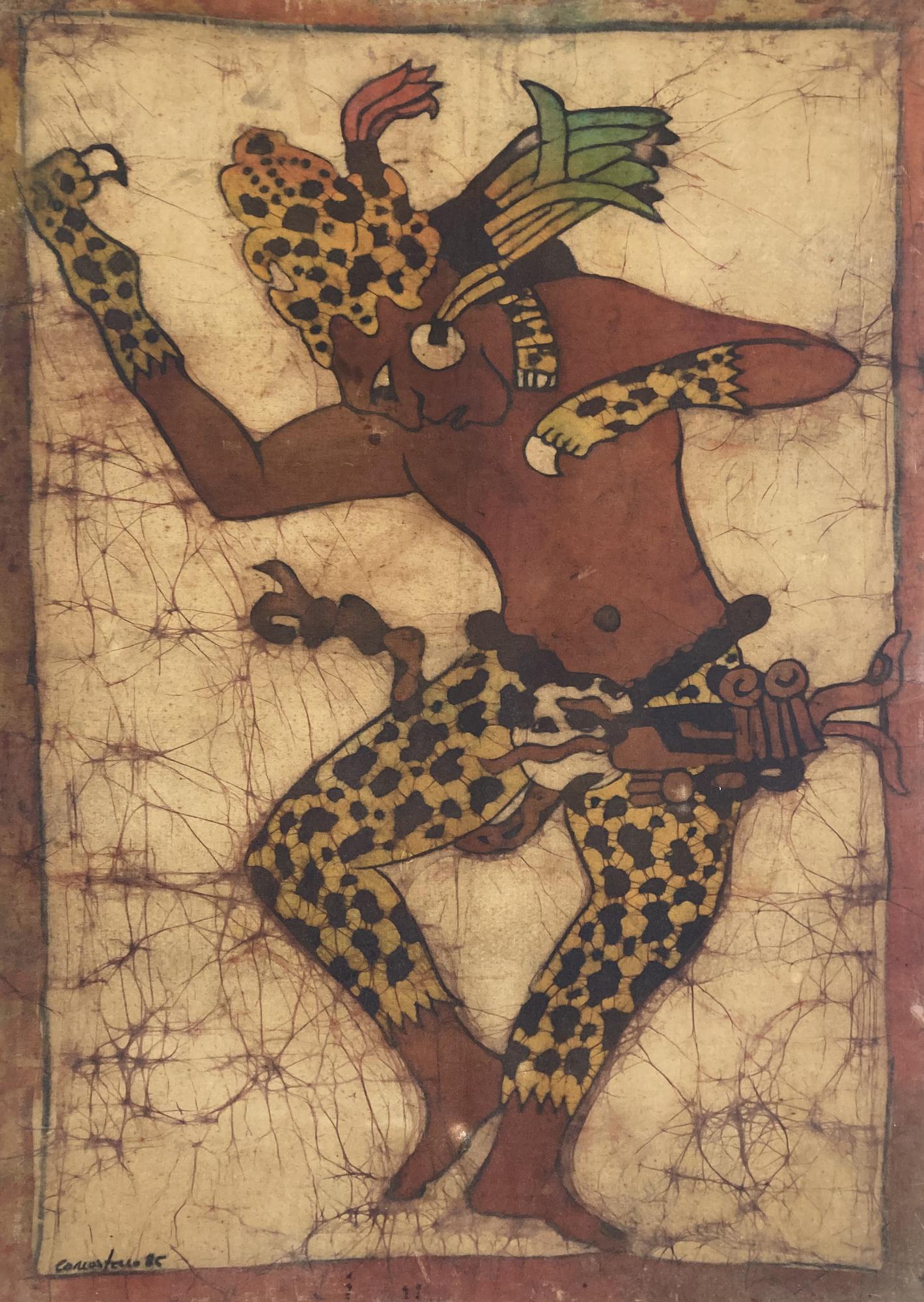 Ignoto IDOLO MAYA tecnica mista su tela applicata su compensato, cm 90x65...