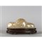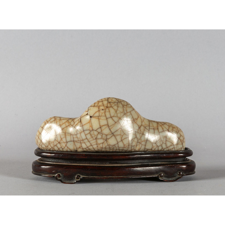 Poggiapennelli in porcellana bianca craquelè a forma di montagna poggiante su base in legno intagliato Cina sec.XVII