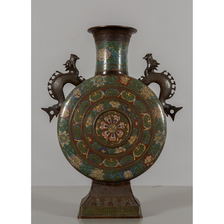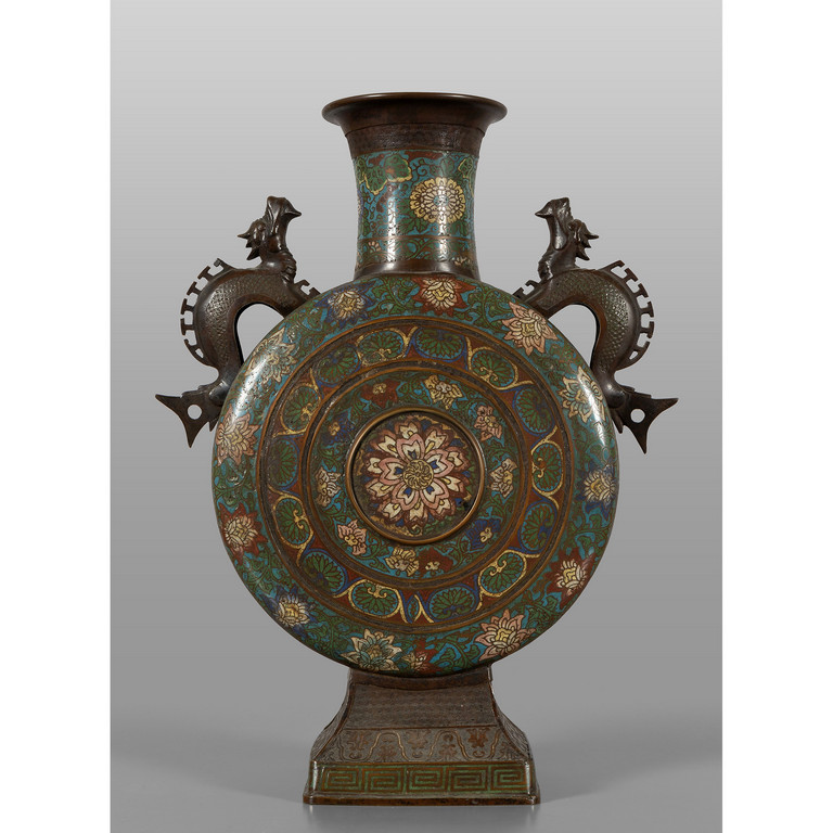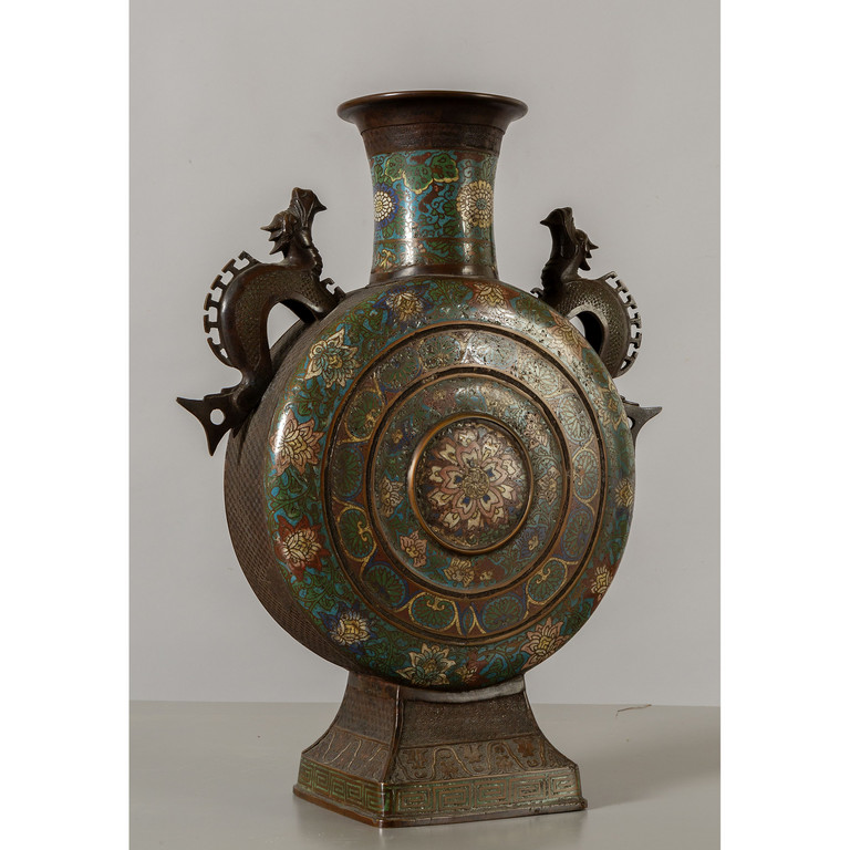 Precedente Lotto 0370 Successivo Aste Boetto - Via Mura dello Zerbino 10R, 16122 Genova ASTA DI ARTE ORIENTALE Asta di Arte Orientale mercoledì 6 marzo 2024 ore 10:30 (UTC +01:00) VASO Grande vaso a fiasca in bronzo cloisonnè Cina secolo XIXh.cm. 58