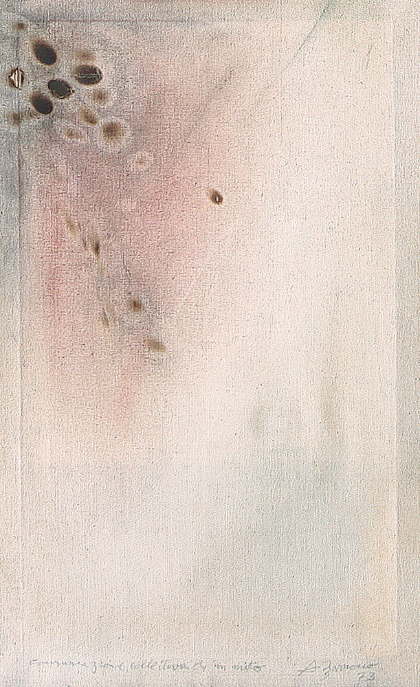 tecnica mista su tela colorata per combustione di fumogeni (da performance) cm. 37x22, firma, titolo e anno in basso, dichiarazione d'autenticità dell'artista su foto.