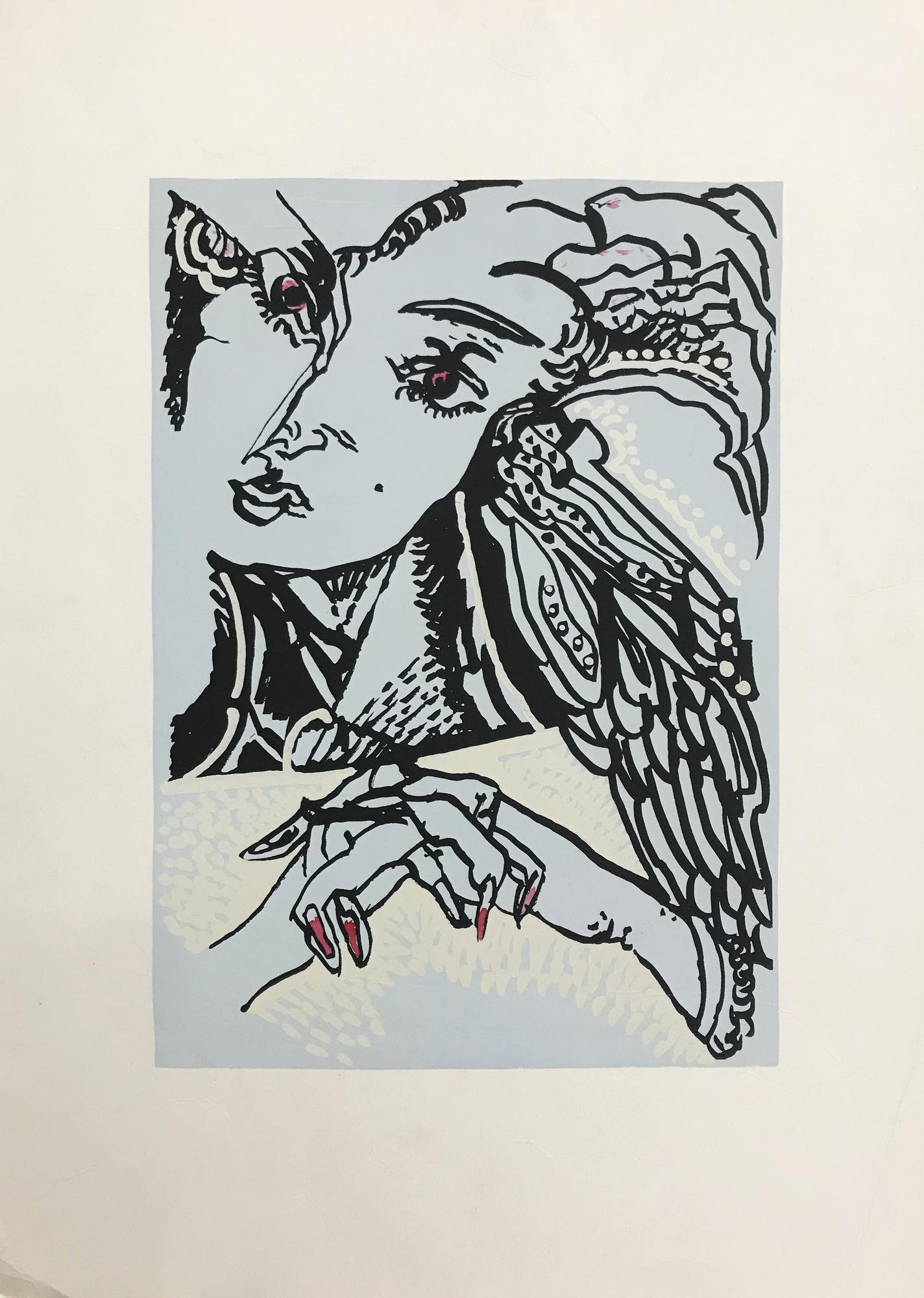 Remo Brindisi RITRATTO prova di colore su carta, cm 28,5x21 opera senza firma...