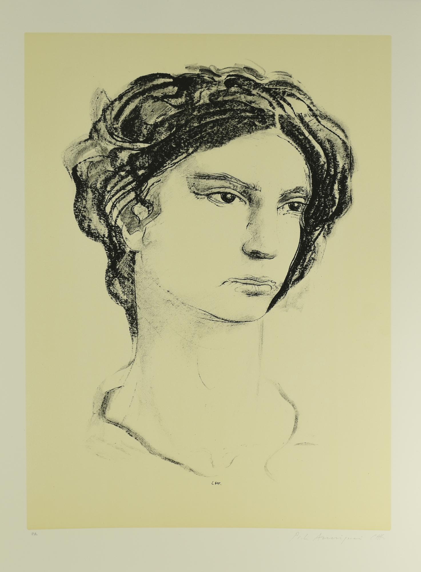 Pietro Annigoni RITRATTO FEMMINILE litografia su carta, cm 70x50; es. P.A....