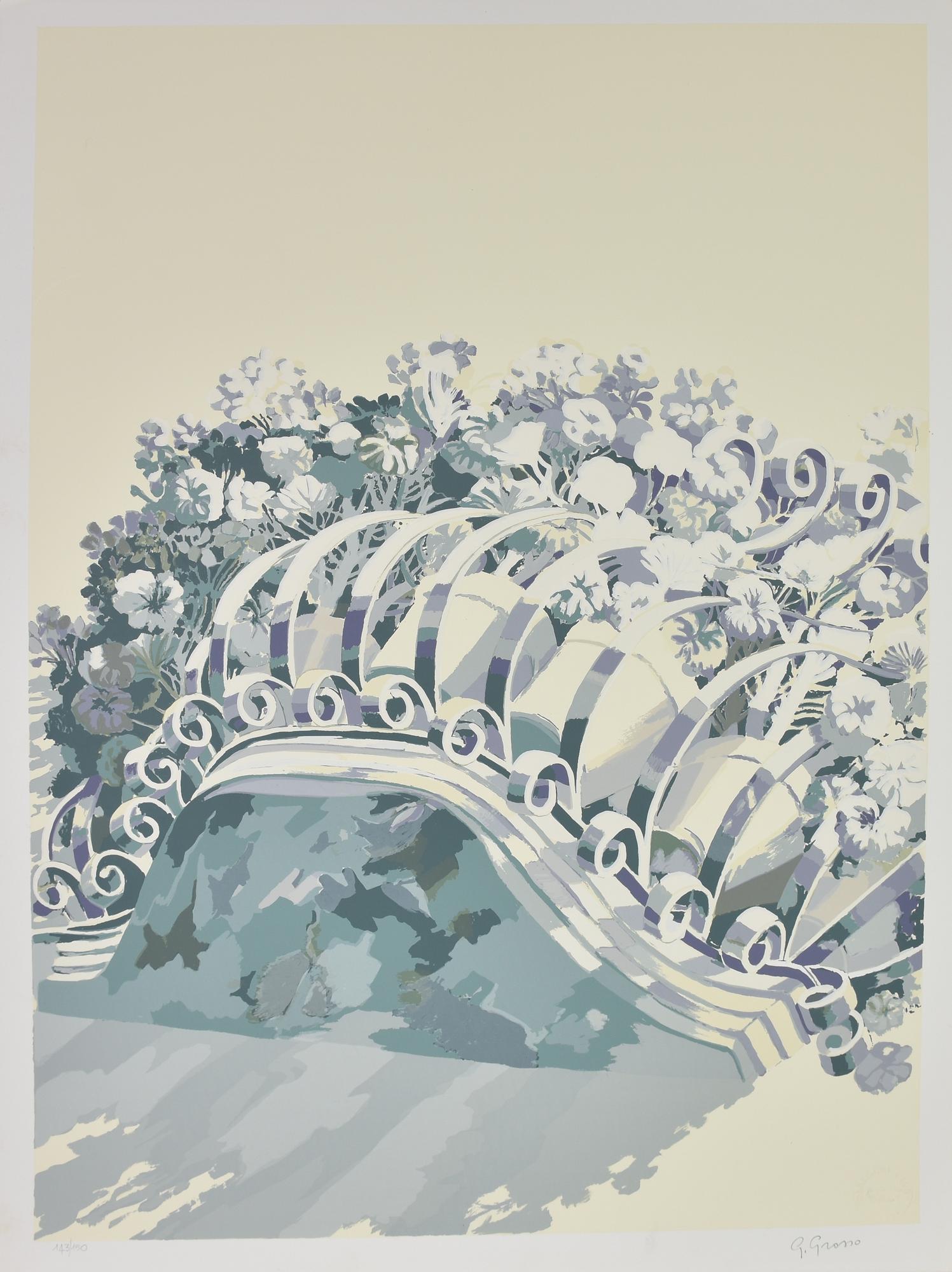 Giuseppe Grosso BALCONE FIORITO litografia, cm 70x50; es. 143/150 firma e...