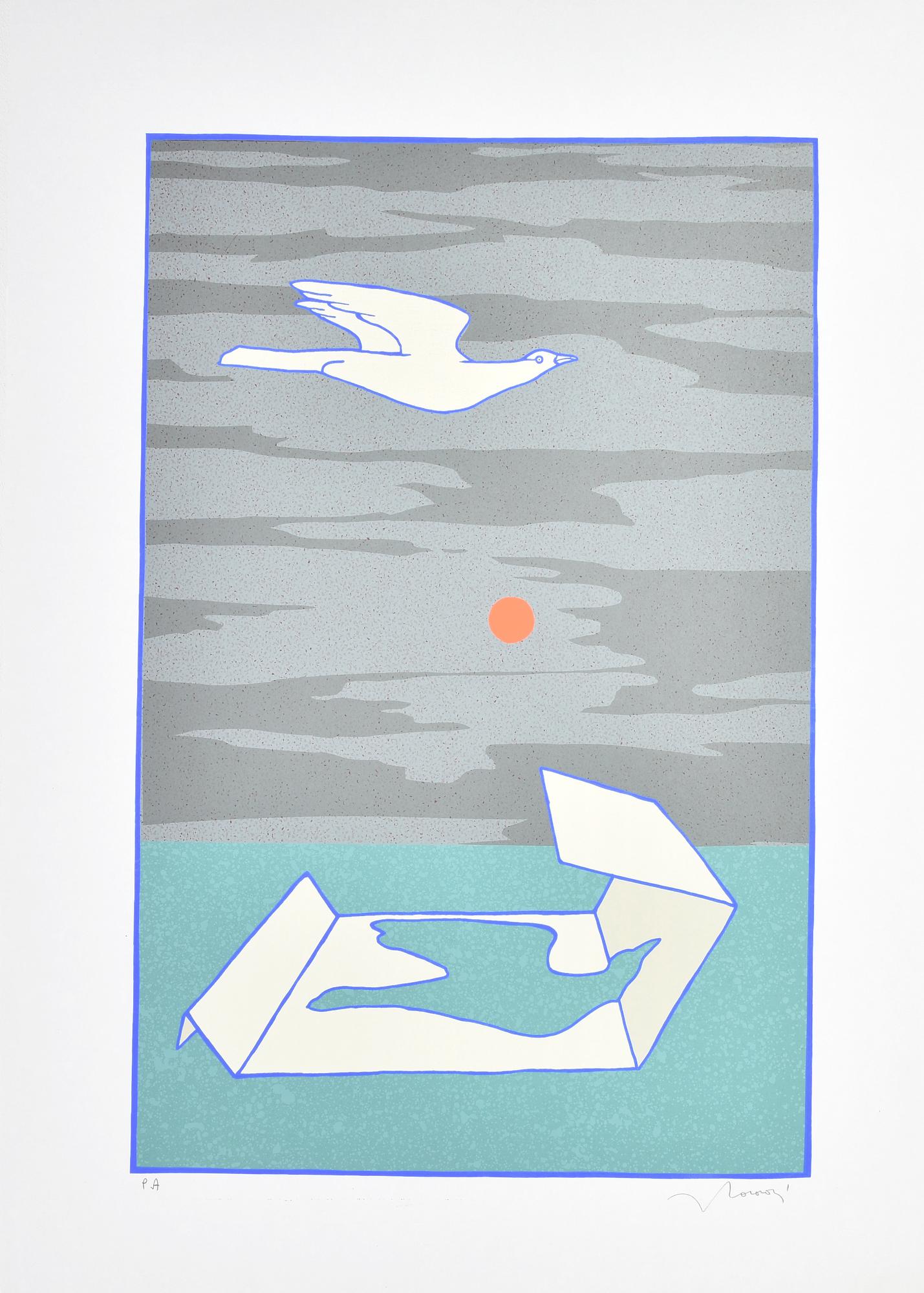 Francesco Casorati GABBIANO IN VOLO serigrafia su carta, cm 70x50; es. P.A....