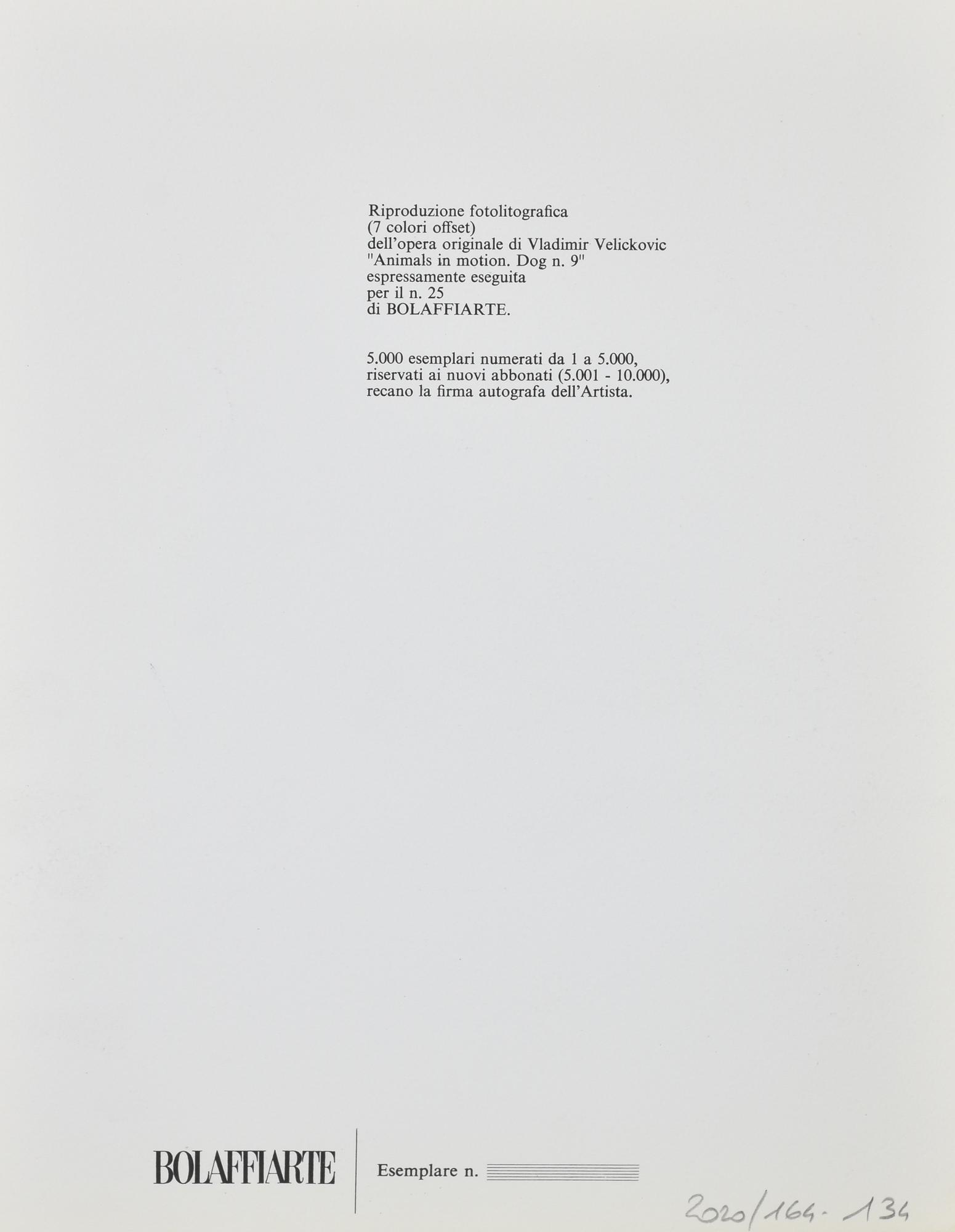 Vladimir Velickovic ANIMALS IN MOTION. DOG N. 9 riproduzione fotolitografica...