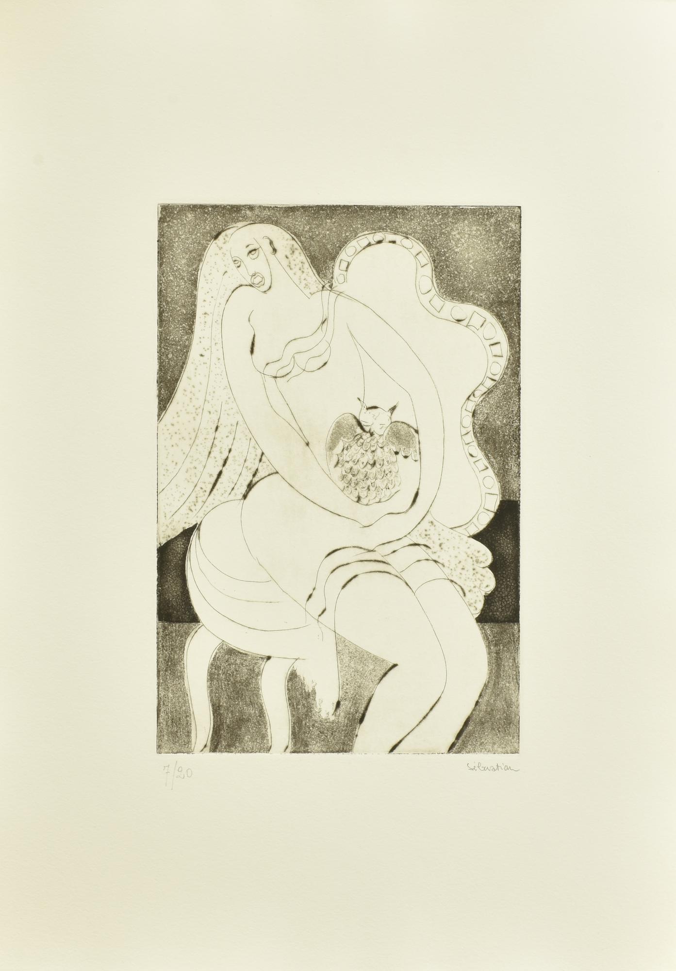 Sebastian LA CHOUETTE incisione su carta, battuta cm 30x20, su foglio cm...