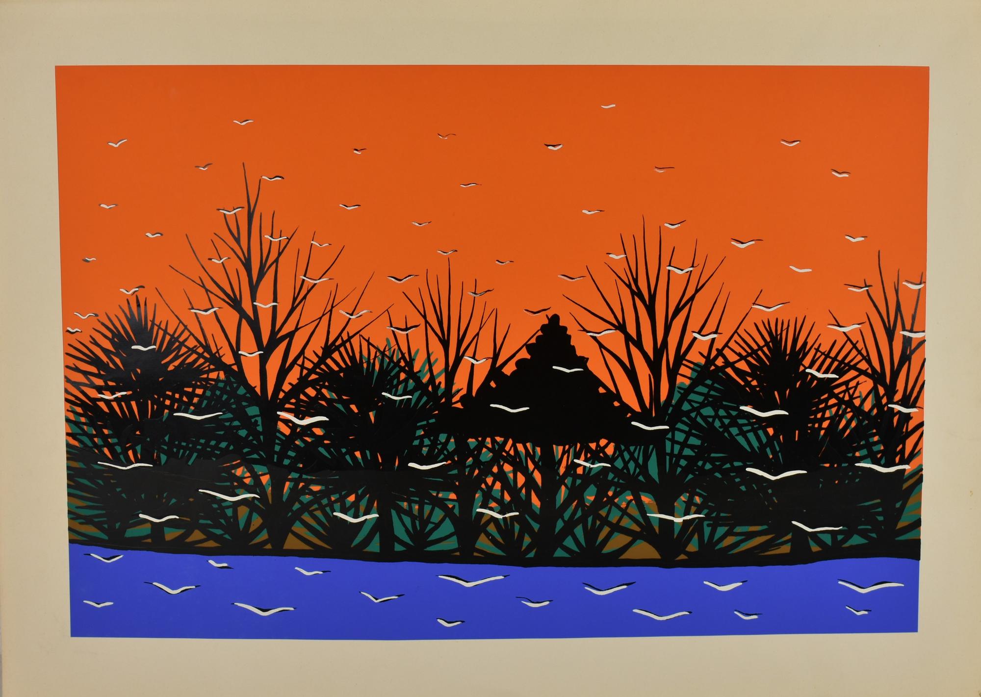Anonimo PAESAGGIO serigrafia su carta, cm 50x70