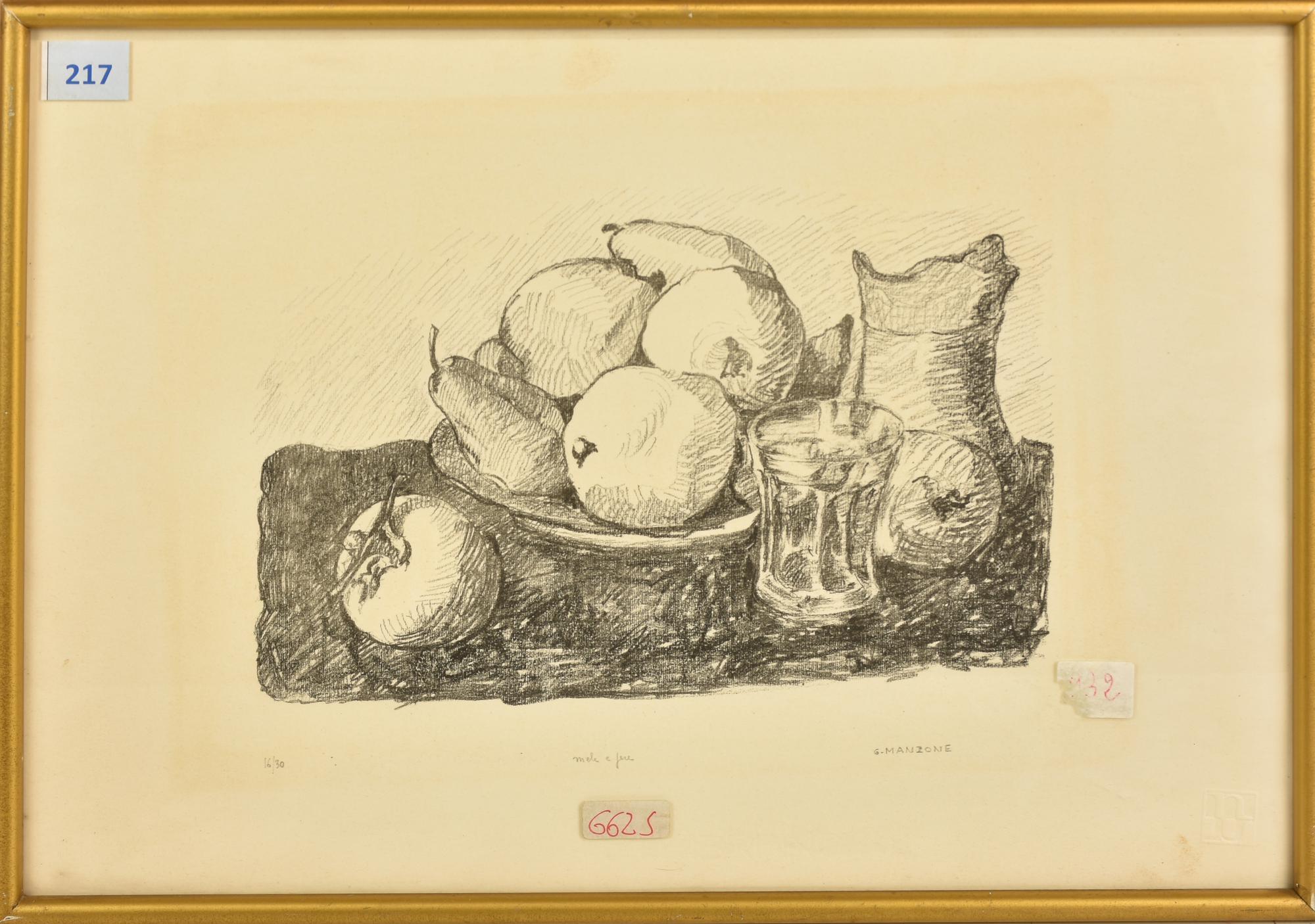 Giuseppe Manzone MELE E PERE litografia su carta Fabriano, cm 35x50; es....