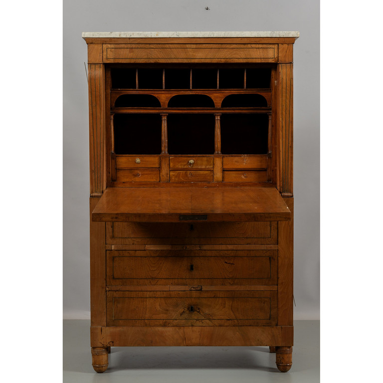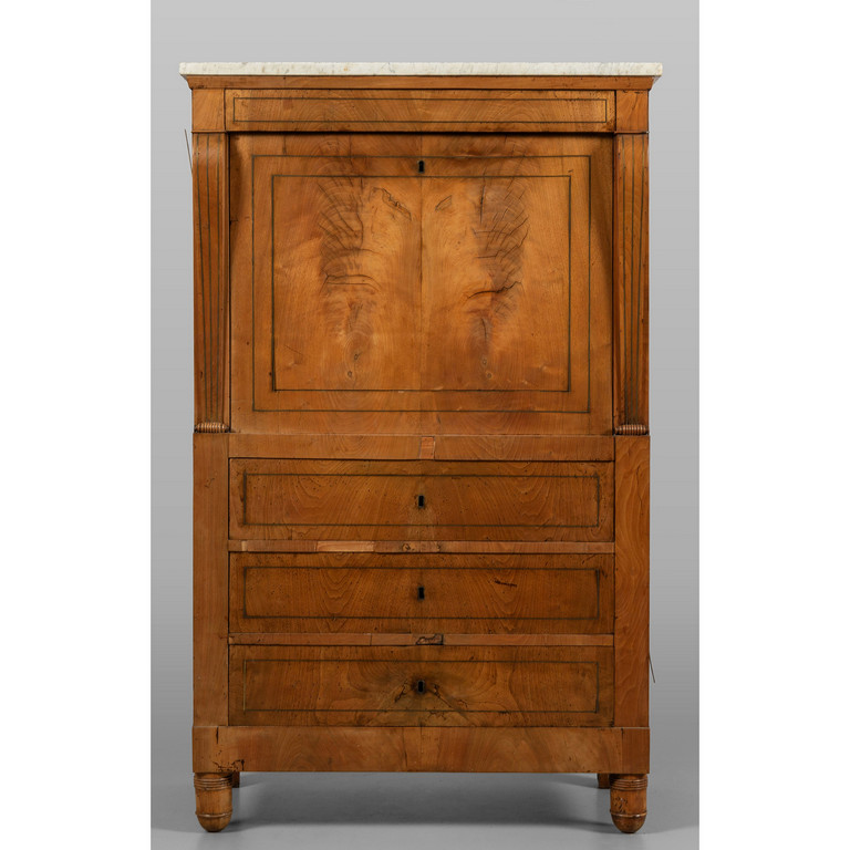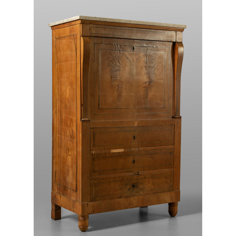 Secretaire Carlo X a quattro cassetti lastronato in mogano e filettato in ottone I metà sec.XIX