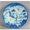Piatto in ceramica decorazione blu su fondo berrettino con figura centrale marca Lanterna Savona sec.XVIII