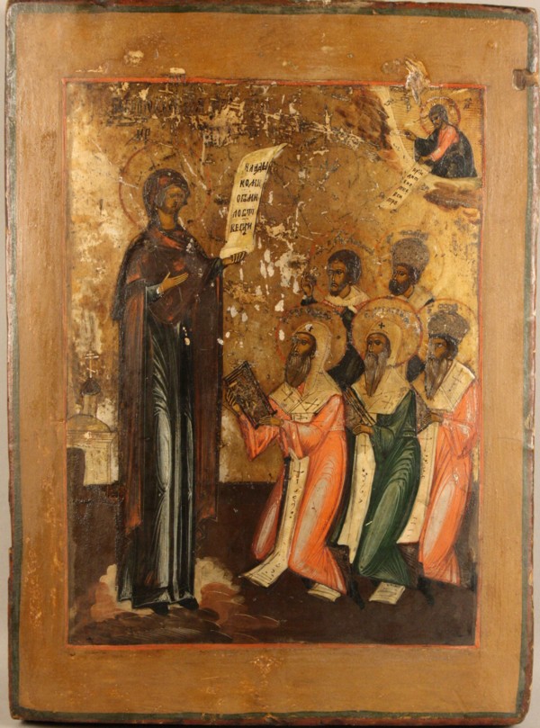 Icona russa su tavola raff. ''CRISTO CON I DISCEPOLI''. XIX secolo. Difetti....